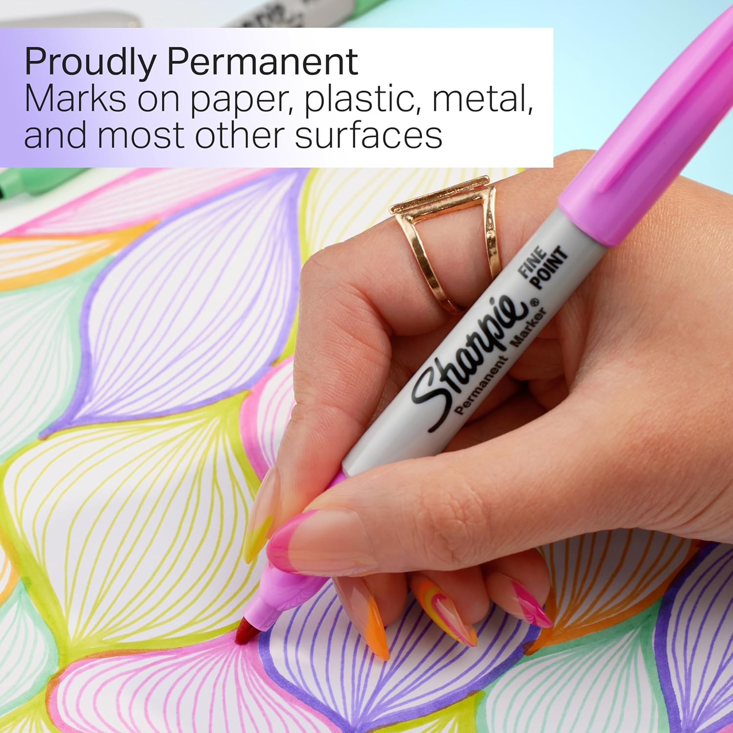 Sharpie Glam Pop Permanent Markers Fine Tip Marker Set Coloring Art Drawing Writing Markers Assorted Colors 24 Count
