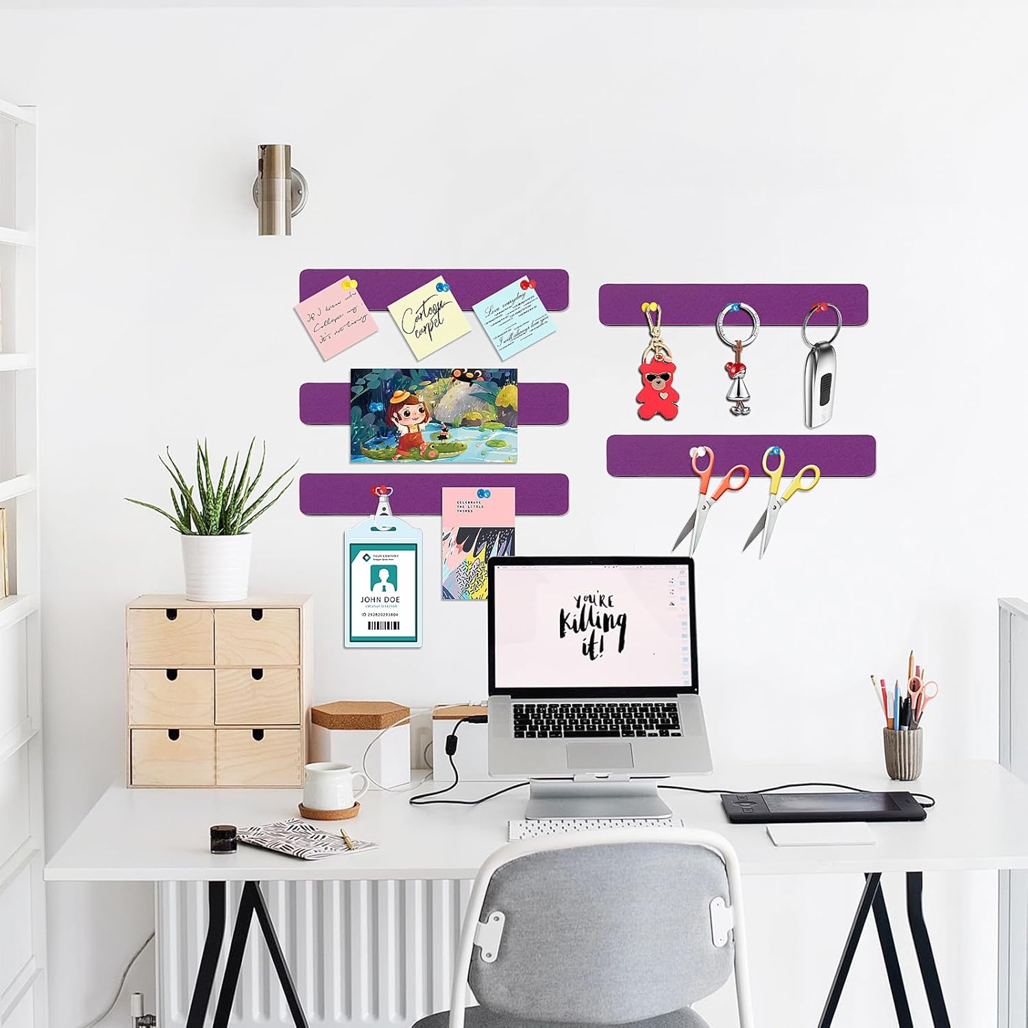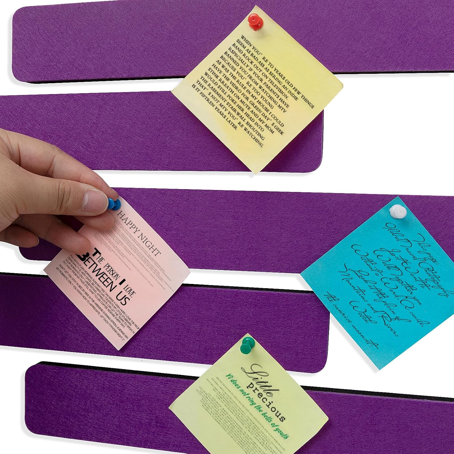 Felt Pin Board Bar Strips Bulletin Board for Bedrooms Offices Home Wall Decoration, Notice Board Self Adhesive Cork Board with 35 Push Pins for Paste Notes, Photos, Schedules (Purple)