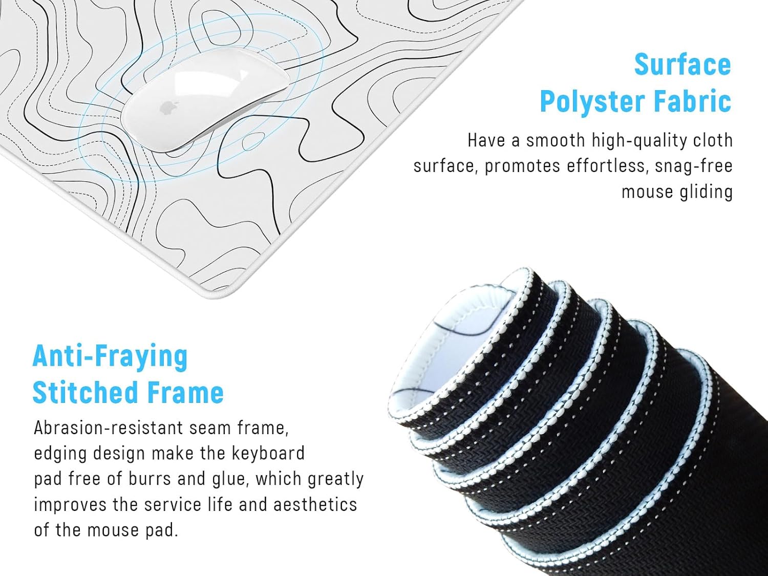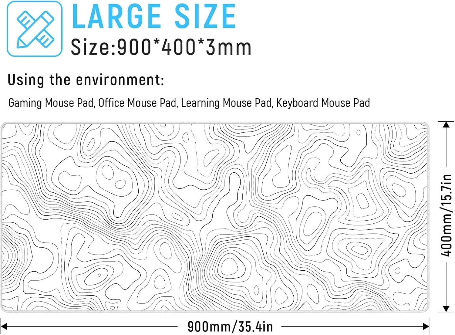 JIALONG White Topographic Large Gaming Mouse Pad, XXL Mousepad, Big Mouse Mat Desk Pad for Keyboard and Mouse, Gaming Computer Laptop PC Desk Office Accessories