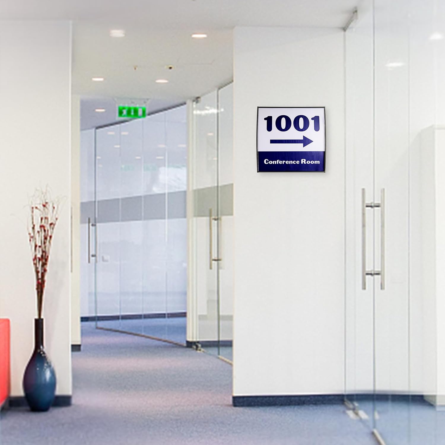 - Print your own number plaque or name plate to this beautiful, curved aluminum sign. Change out your graphics quickly by loosening the protective non-glare lens of this custom door sign. Use this item as a room number plaque, name plate, meeting rooms, Cubicles, or for wayfinding purposes.