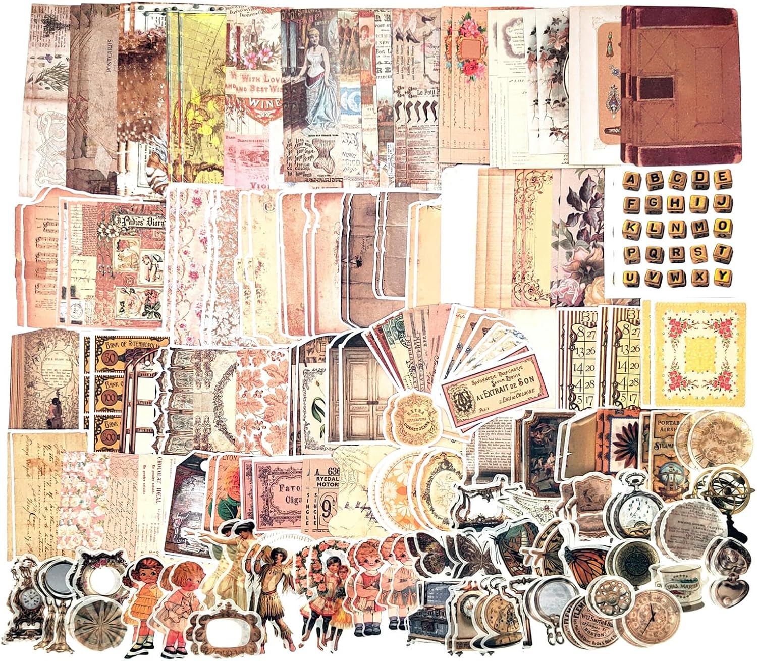200PCS Vintage Scrapbooking Supplies Pack, Aesthetic Scrapbook Sticker Paper Art Journaling Kit for Bullet Junk Journals,Planner,Cottagecore Decor Gifts (Retro)