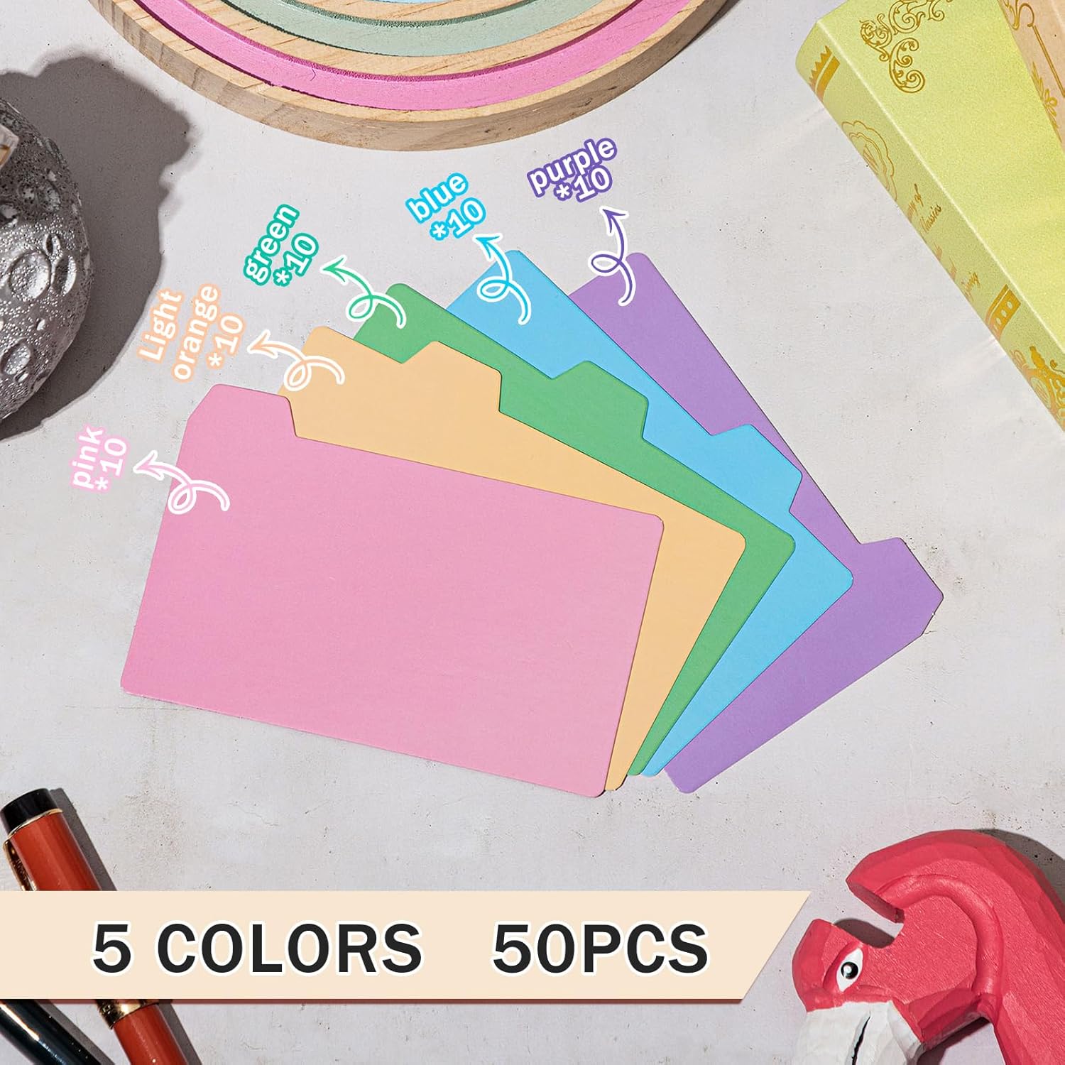 - Sufficient Quantity: the package includes 50 pieces of card dividers in 5 colors, 10 pieces in per color, alongside 2 alphabet stickers of letters and numbers, sufficing for daily use and also providing the option to share with colleagues and classmates