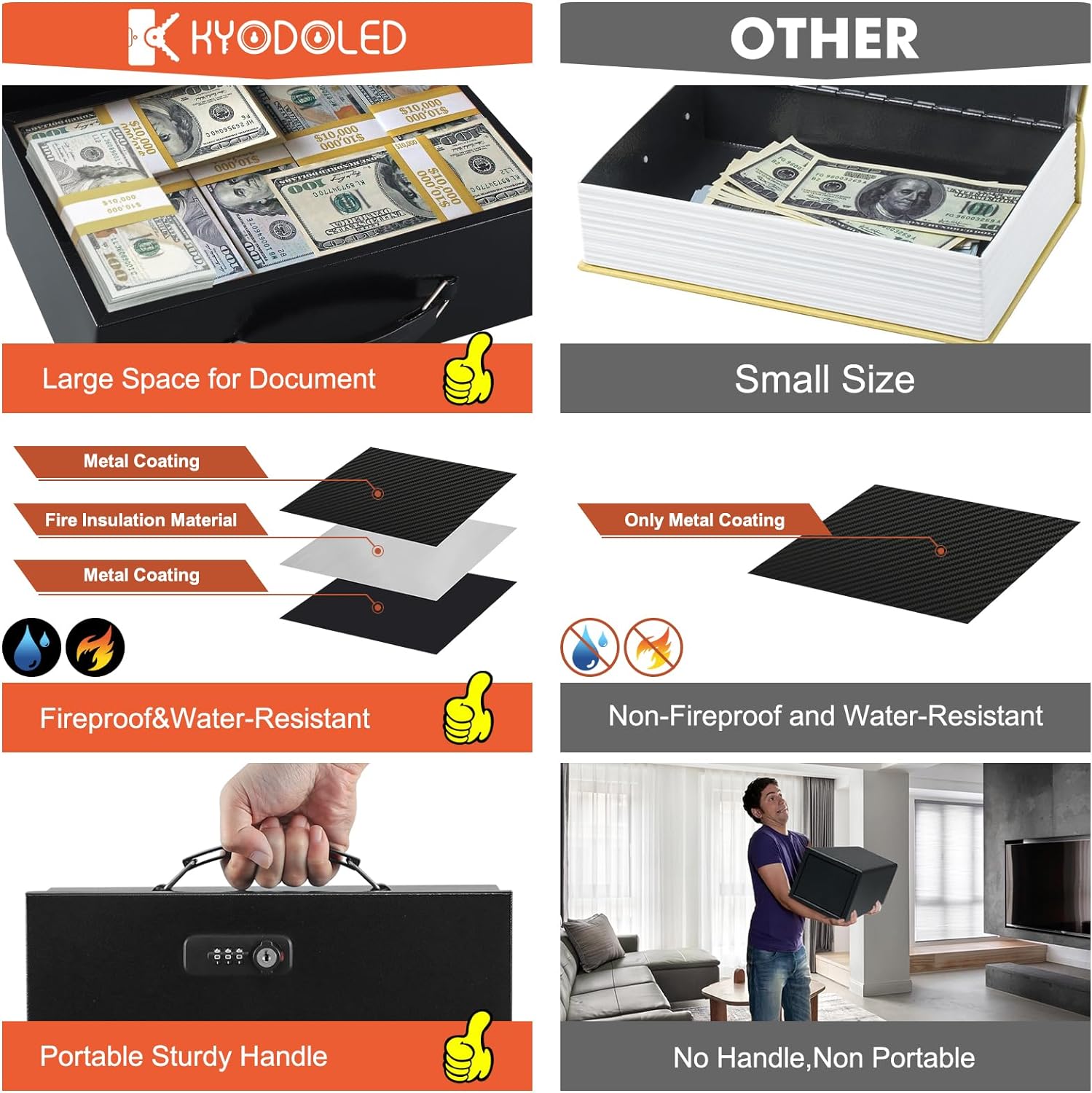 - FIREPROOF INSULATION: KYODOLED fireproof storage safe box is made of sturdy double cold rolled steel construction and is equipped with fire resistant insulation.It will keep your valuables safe, organized and conveniently portable!