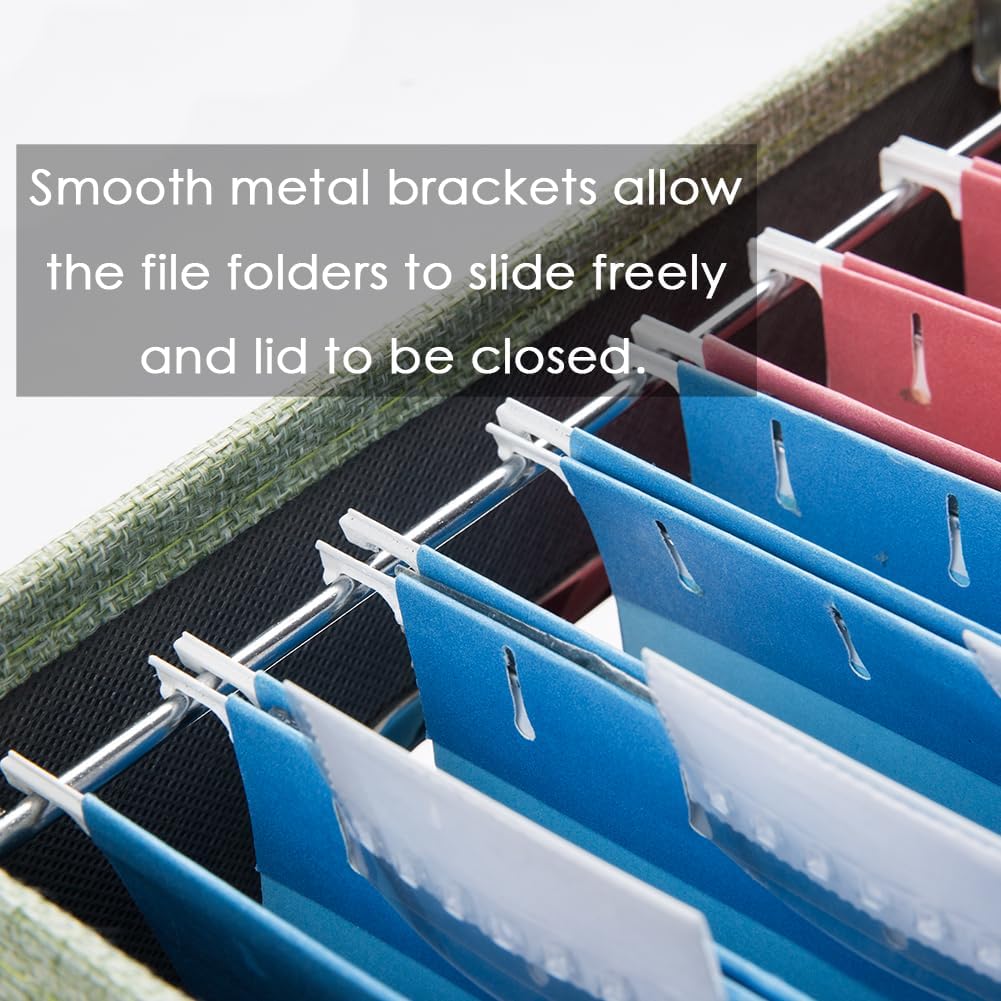 - [DECORATIVE] Say bye bye to boring paper filing boxes! The Prandom file folder box set in Green linen provides a stylish way to organize all your papers and supplies; Functional features & a beautiful design create THE ultimate filing organizer