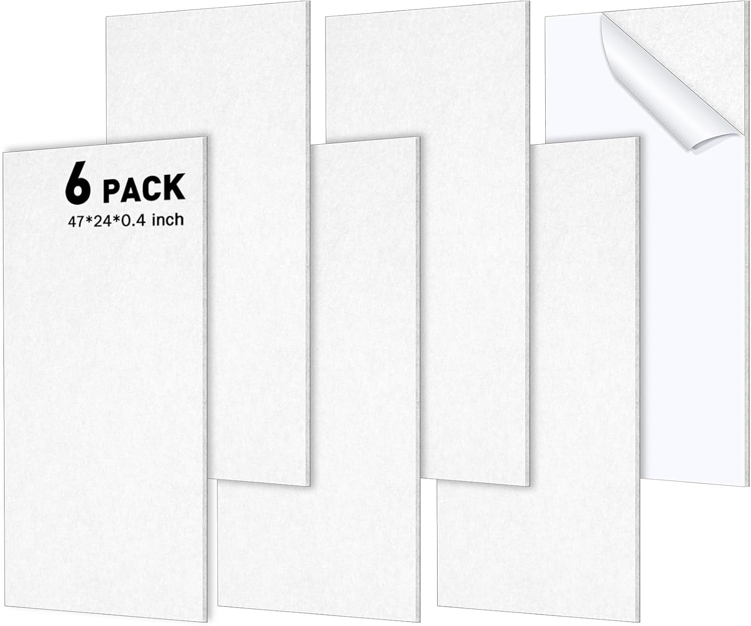 Frienda 6 Pack Large Acoustic Panels 47 x 24 x 0.4 Inch Fabric Wrapped Sound Proof Self-adhesive High Density Foam Panels for Recording Studio Acoustical Treatments Home Office(White)