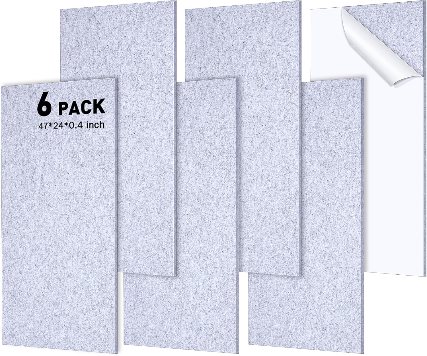 Frienda 6 Pack Large Acoustic Panels 47 x 24 x 0.4 Inch Fabric Wrapped Sound Proof Self-adhesive High Density Foam Panels for Recording Studio Acoustical Treatments Home Office(Silver Gray)