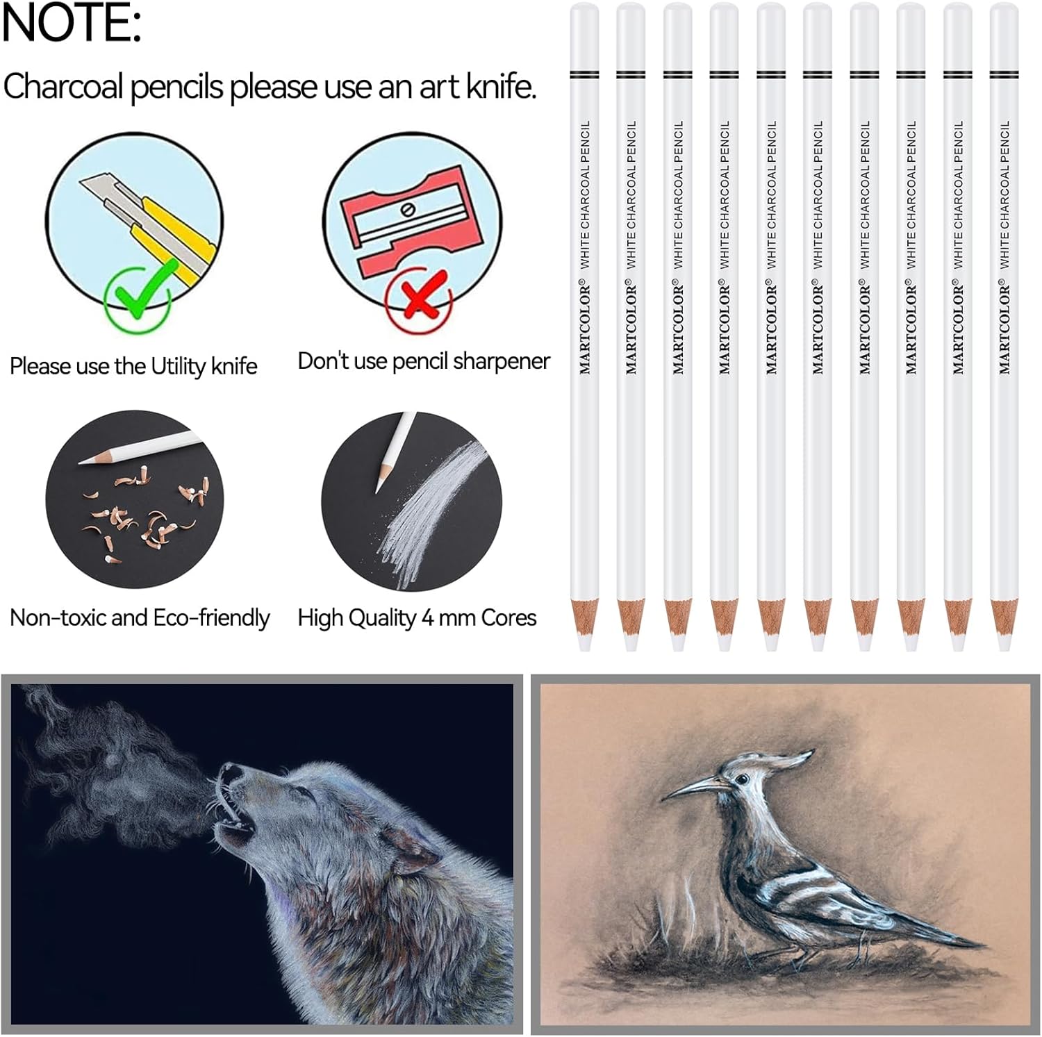 - PROFESSIONAL WHITE CHARCOAL PENCILS SET - This set of 10 pc white charcoal pencils are ideal for use on dark or tinted paper. blend and shade with ease, suitable for use with black paper visual diaries, charcoal & graphite products.