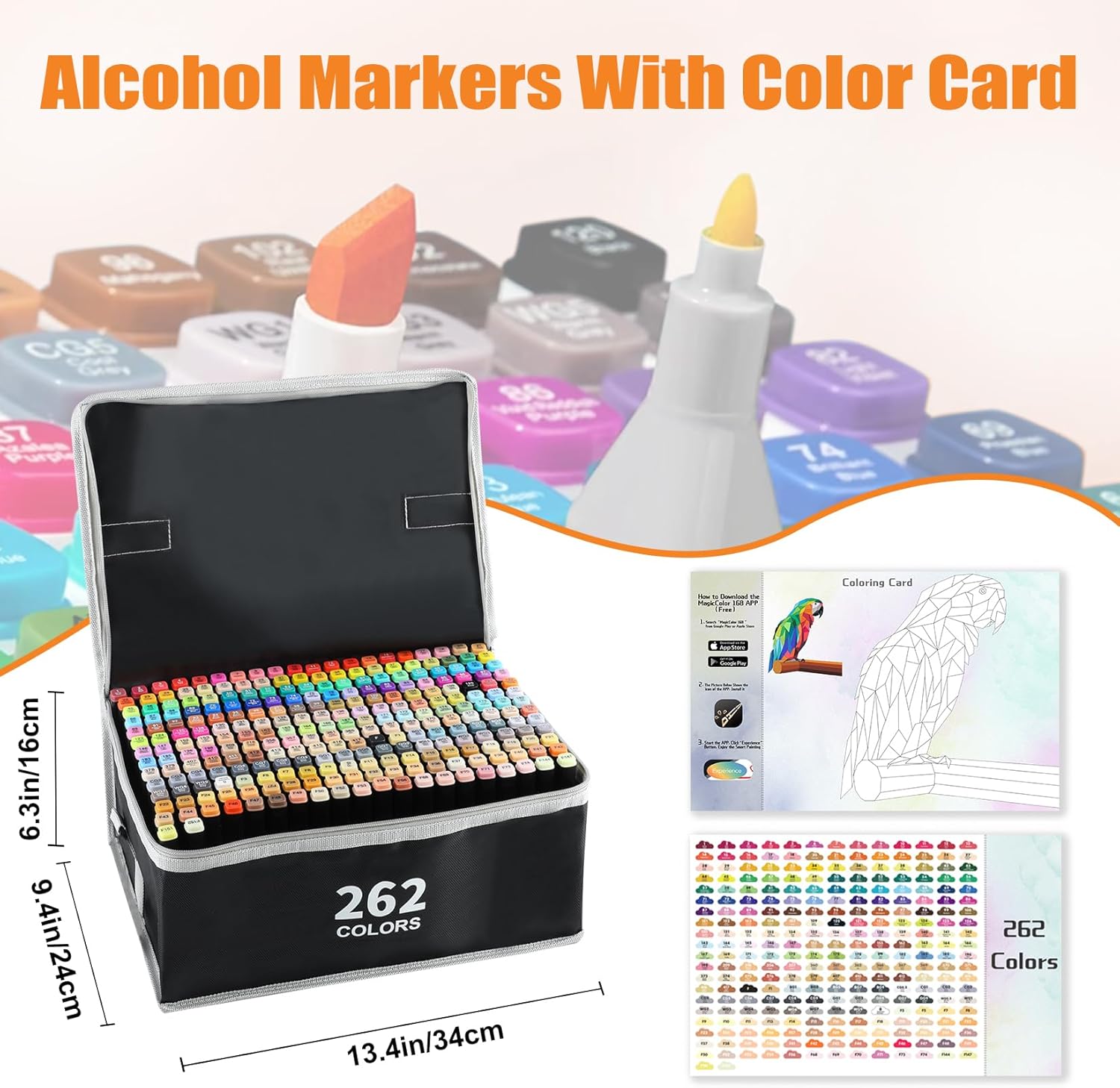 262 Colors Alcohol Markers with Free App, Chisel & Fine Tip Alcohol-Based Marker Set for Adults Kids, Dual Tip Artist Markers for Drawing, Coloring Illustration, Painting and Great Gift Idea