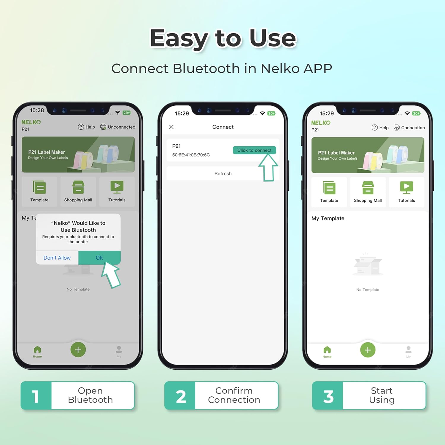 - Easy to Use: NELKO label printer compatible with IOS & Android Phone via bluetooth connection. Step 1: Download "Nelko" APP from Google Play or App Store. Step 2: Install the paper roll. Step 3: Connect the P21 bluetooth within APP. Step 4: Choose a quick template and start printing. It is not compatible with Google phones on Android 14. This label maker machine with tape APP included more than 90 +Fonts, 10+ Languages, 450+ Materials. (Note: This label maker doesn't work with computers)
