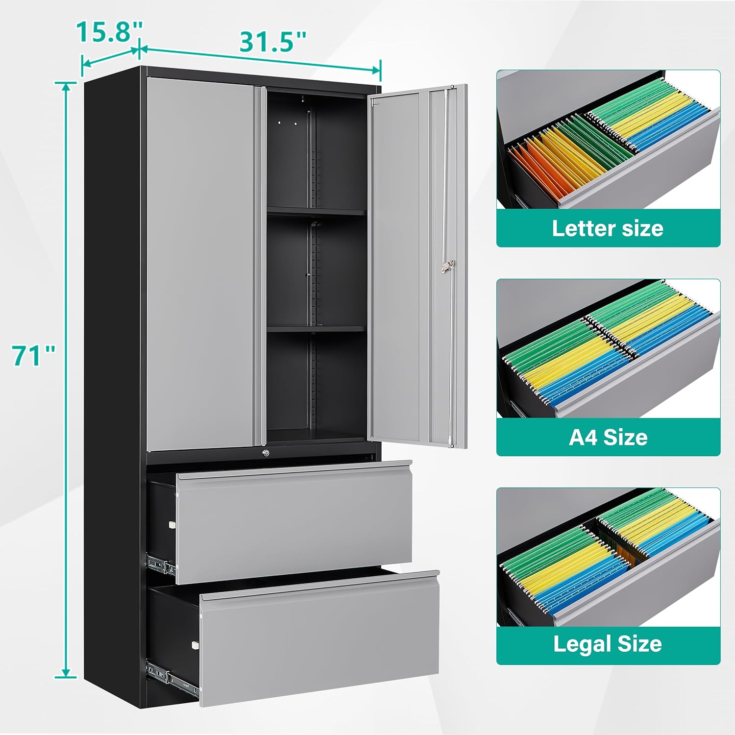 - 【Lockable Storage Cabinets】Our file cabinet come with locks and 2 adjustable shelf for a great fit and convenience. high end unlocks to protect valuables including keys. Whatever your storage needs, you can create a unique storage space that suits them