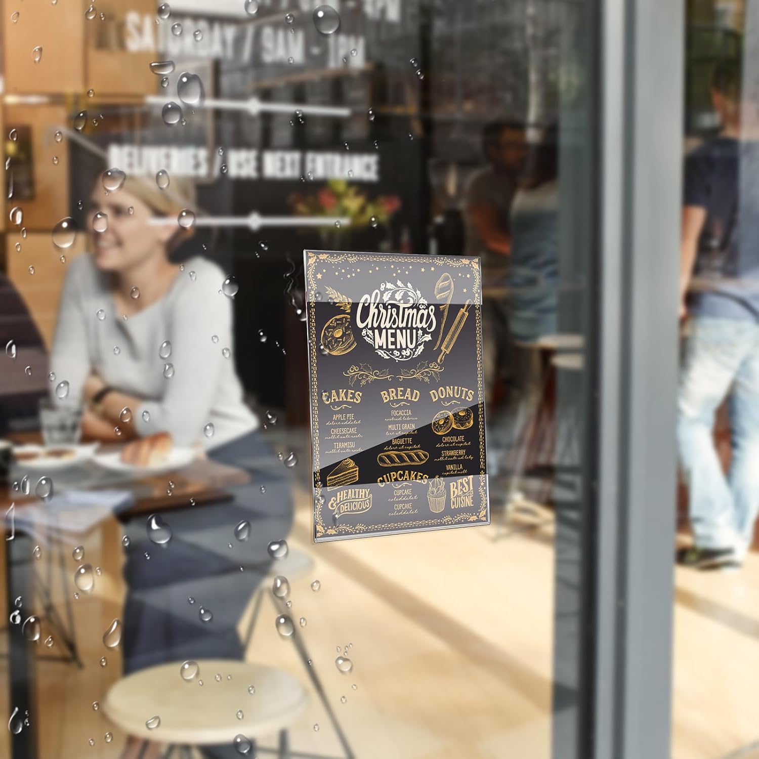 - Versatile Placement Options: the acrylic sign holder 8.5 x 11 inches; Whether you choose a wall mount sign holder or a stand alone display, this set caters to all your preferences, such as displaying ads, menus, photos, brochures, wedding paper and more; The sign holder can be applied in offices, restaurants, shops, schools, churches, exhibitions, hotels, etc
