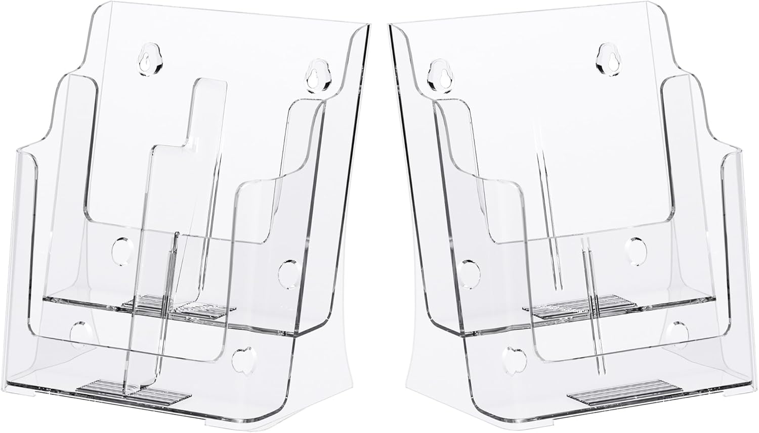 - Perfect Design:The provided removable divider can easily divide the 4 pocket into 8 pocket which is perfect to hold 4 x 9 inch brochures.This acrylic brochure holder is self-standing, Slanted Back Support on the back of brochure holder allows a smooth movement and more secure standing,you can use as a wall mount brochure holder