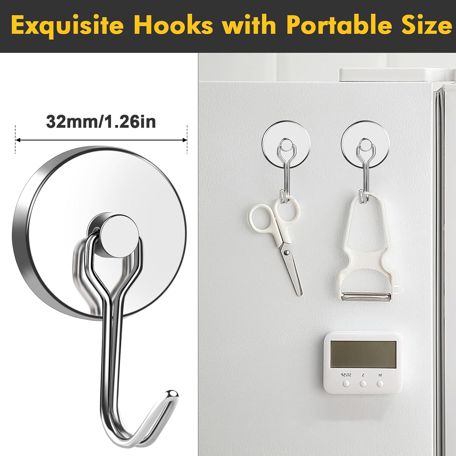 - MUTI-USE MAGNETIC HOOKS: The magnetic refrigerator hook has a wide range of uses and can be used to hang items in different environments. Magnetic grill hooks are used to hang keys, towels, umbrellas, and other small objects on magnetic surfaces