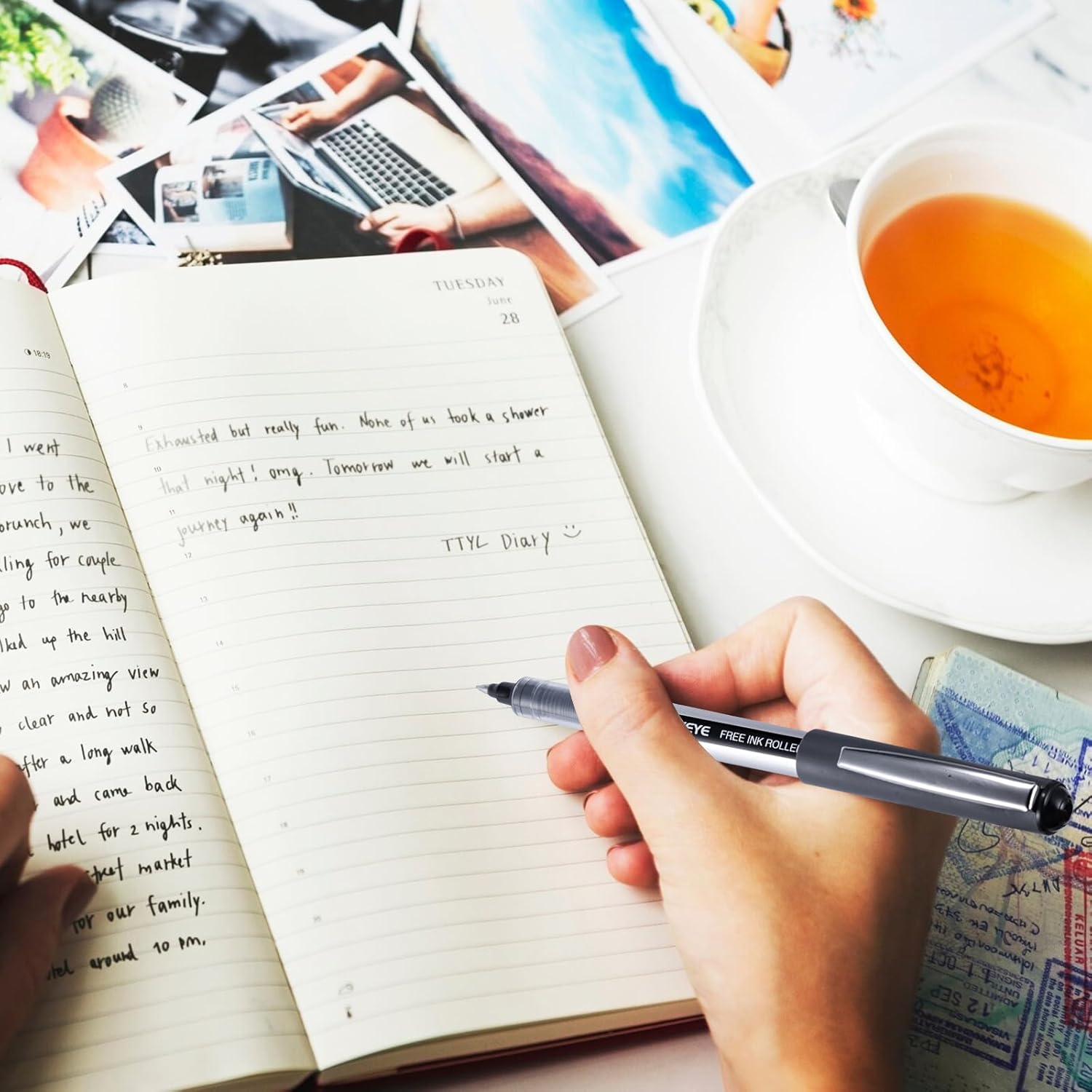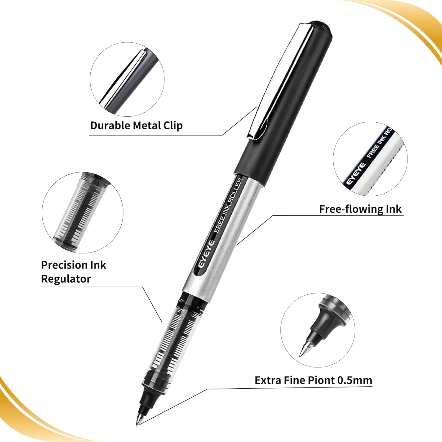 - Smooth Writing: Eyeye rollerball pens black writes smoothly, gliding effortlessly across the page effortlessly, delivering super smooth precision for crisp lines and detailed writing. Liquid ink pens fine point smooth writing pens for journaling, taking notes, general writing, signatures and other uses anything on paper you have to write.