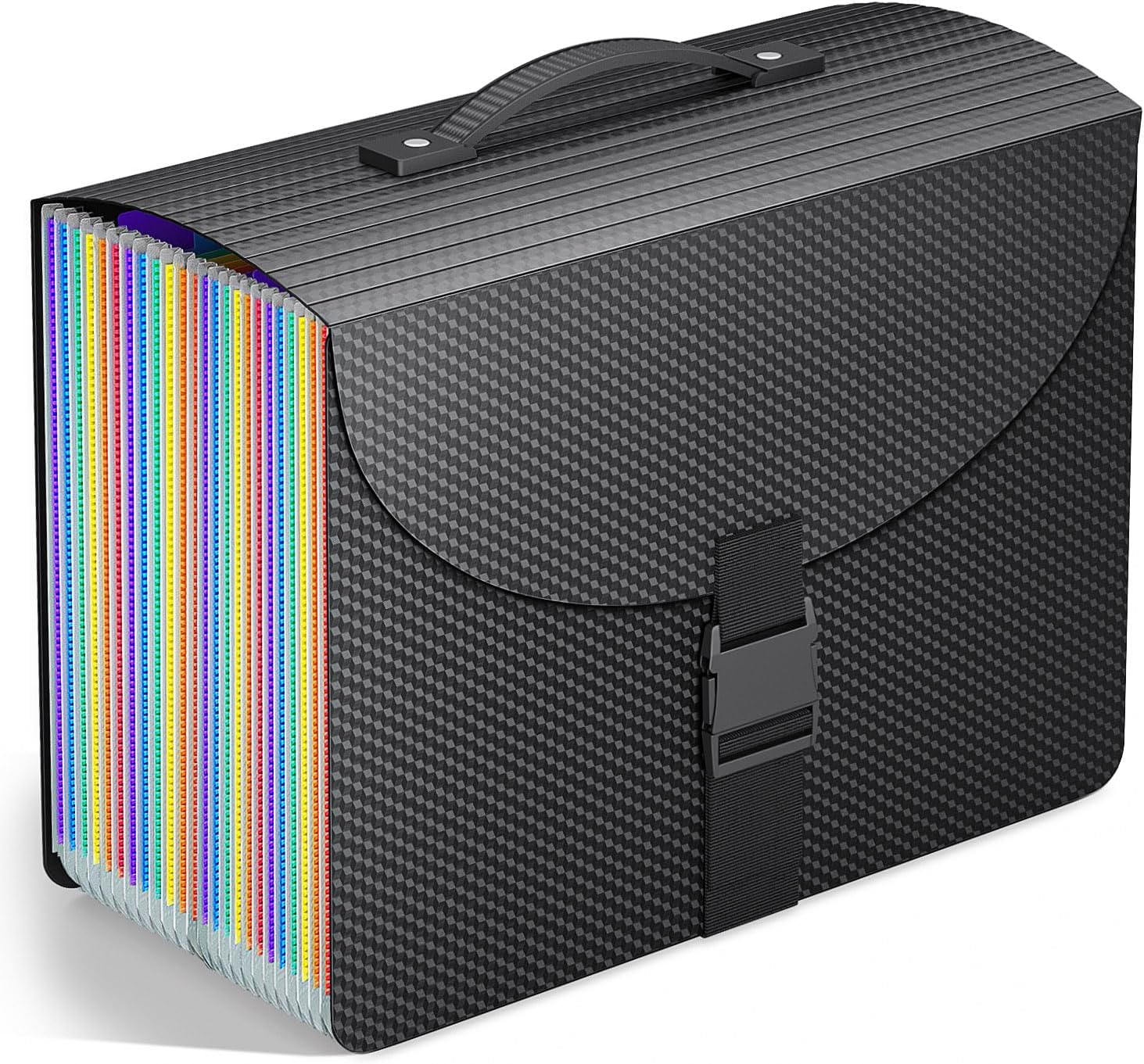 - ✔【HIGH CLASS】 Durable Plastic Handle, the lid is connected to the bottom by a beautiful adjustable buckle,make the folder instantly looks more fashion,when you hold a good amount of documents into file folders,easily take away all important documents anywhere and the buckle is perfect to protect the safety of files,successfully upgraded from traditional accordion file organizer.
