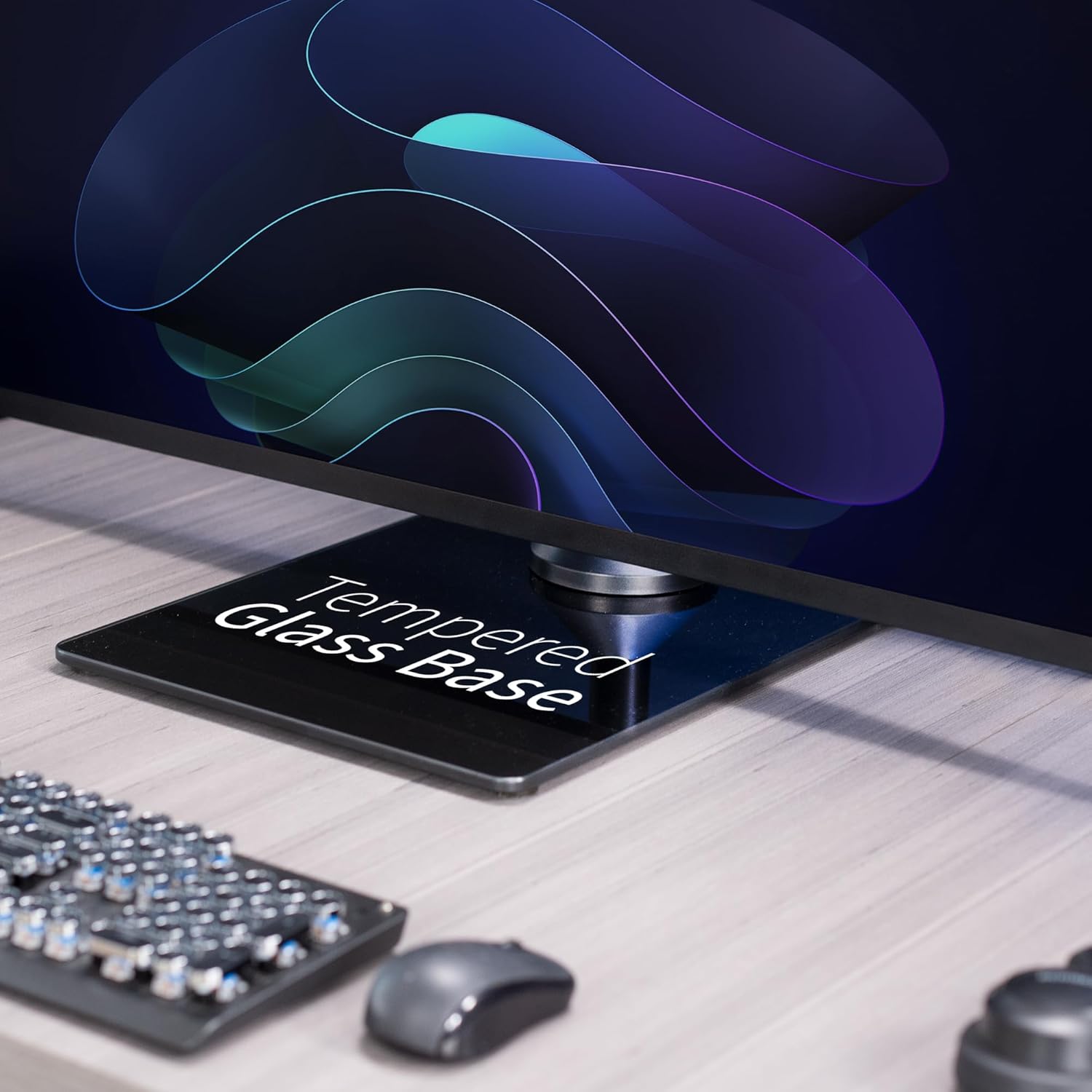 - Elegant Tempered Glass Base: Measures 12.4” x 15.4” and provides excellent stability for 2 monitors. The bottom of the base features padding to protect your desk from scratches