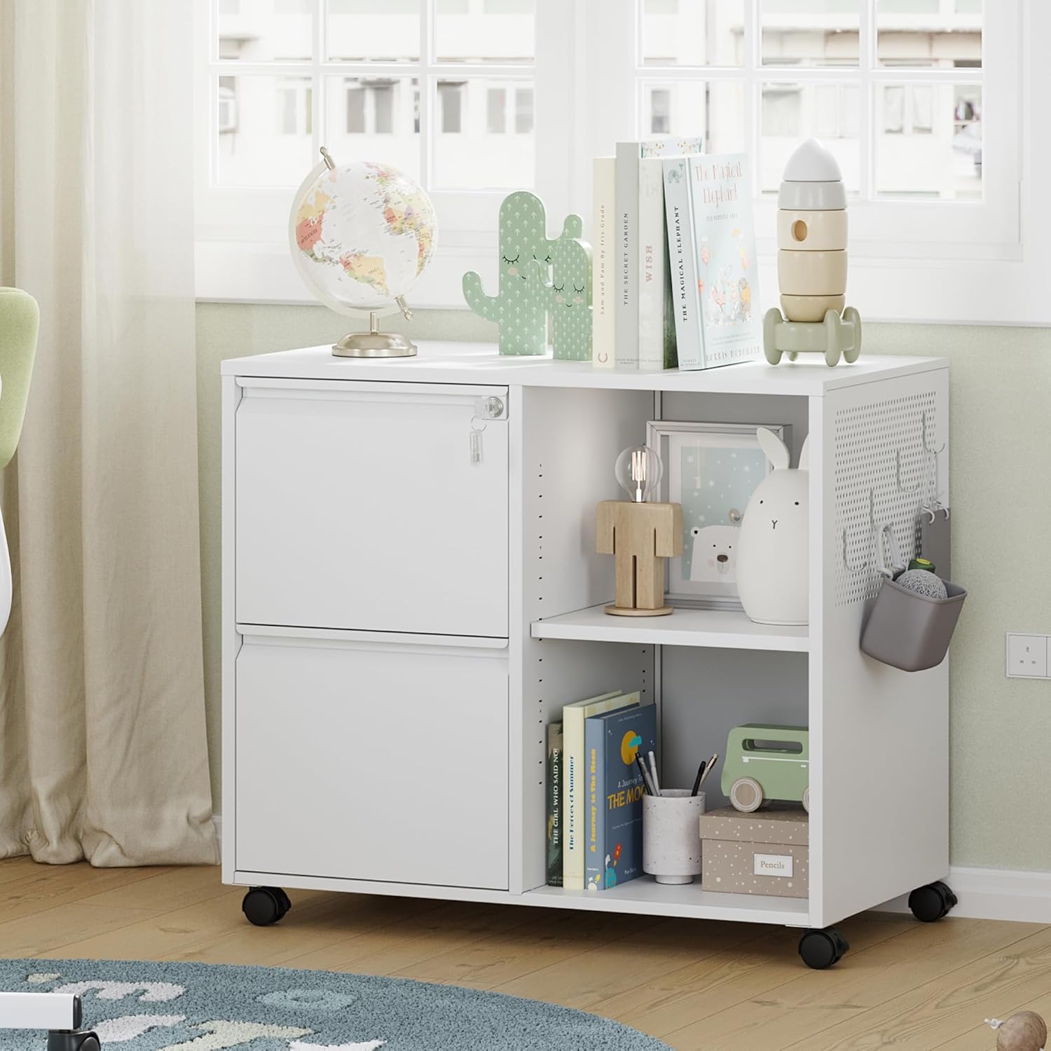 Letaya Mobile File Cabinet, Metal Lateral Rolling Printer Stand Filing Cabinets with Shelves for Home Office-Storage A4/F4/Letter (White)