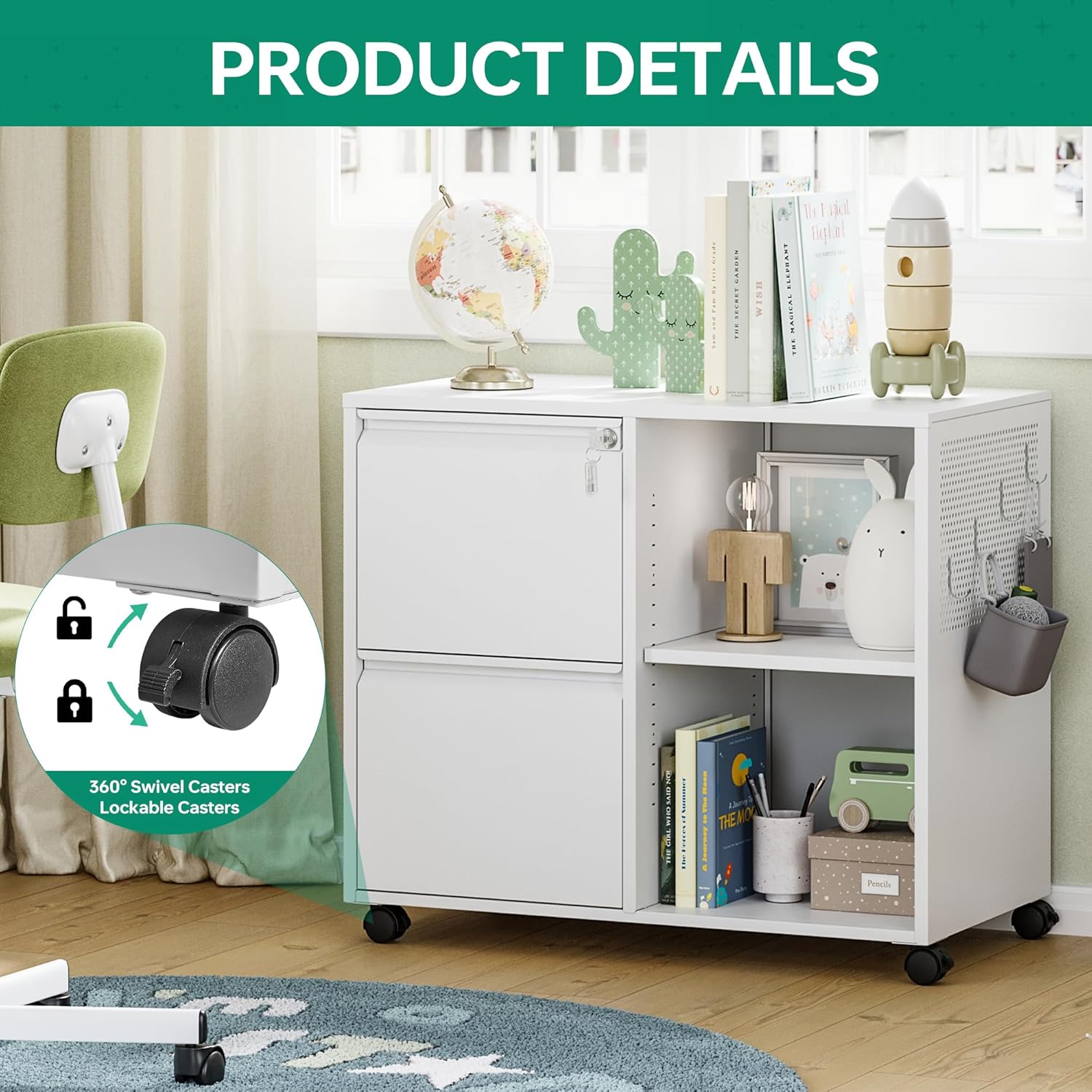 - 『Multifunctional Filing Cabinet』Lateral filing cabinet with open storage spaces, organization and storage drawers,holds printer stand and office craft storage,side hole panel design is beautiful and can hang items,modern delicate appearance ornamental to your office & home.