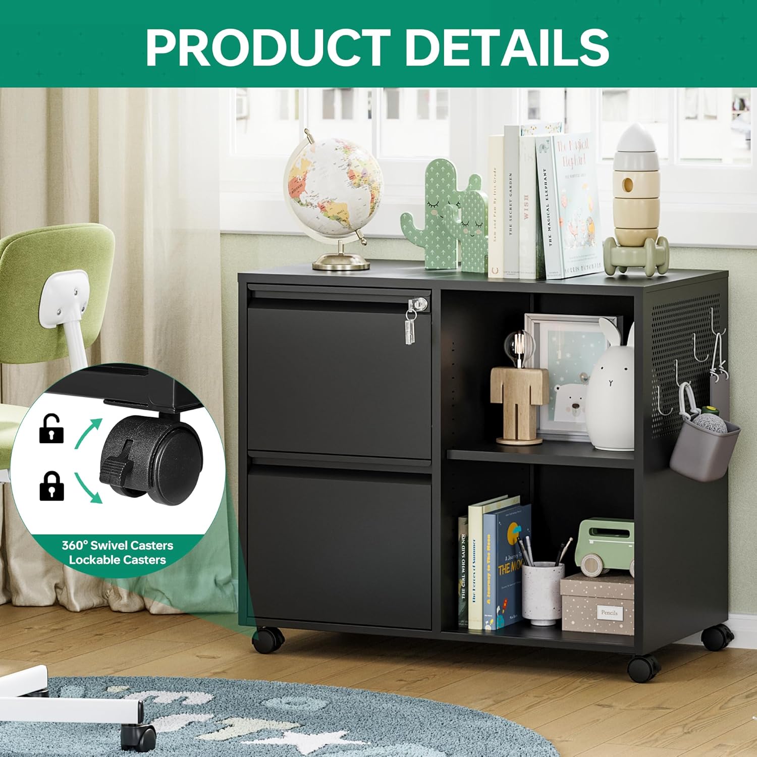 Letaya Mobile File Cabinet, Metal Lateral Rolling Printer Stand Filing Cabinets with Shelves for Home Office-Storage A4/F4/Letter (Black)