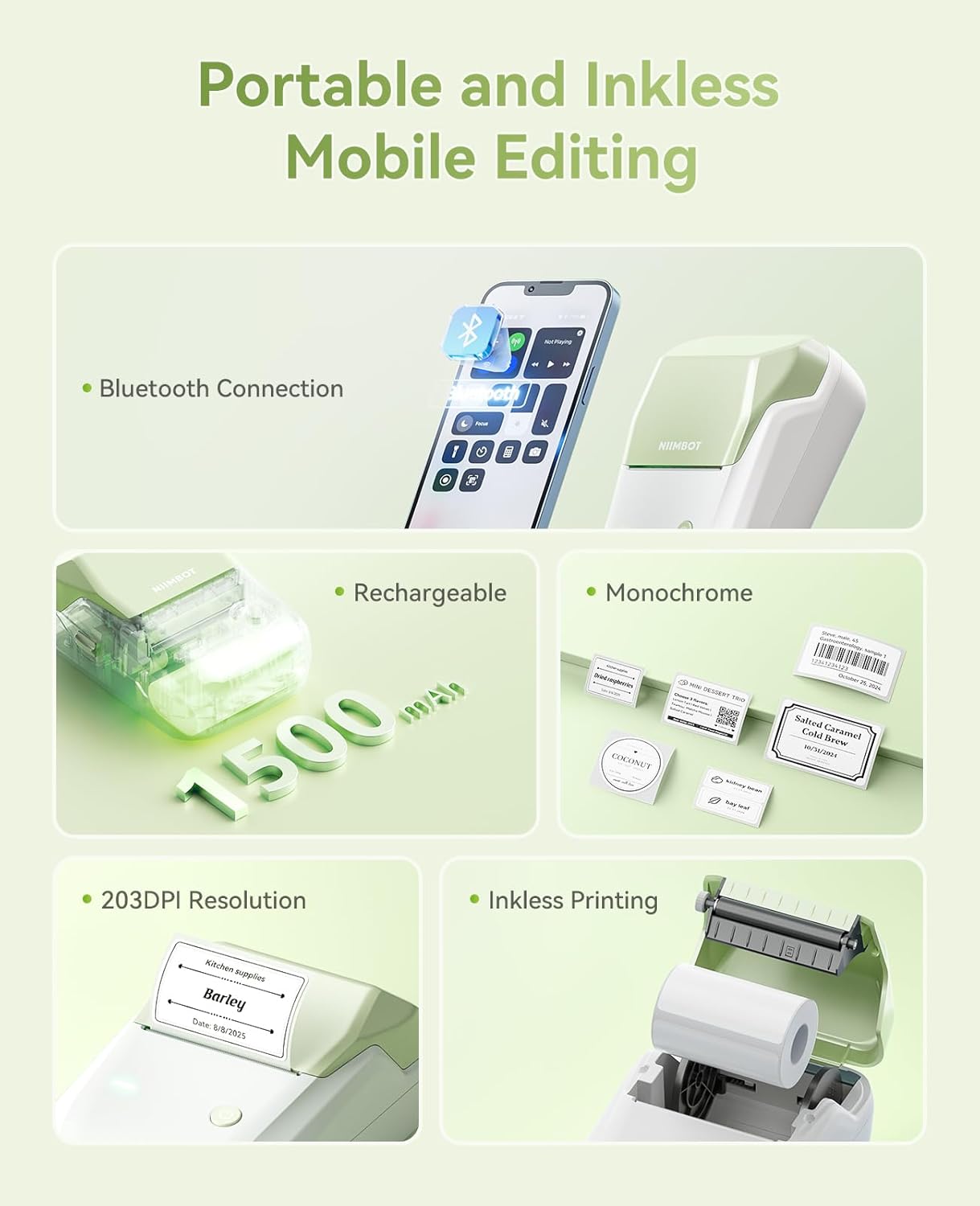 NIIMBOT B1 Label Maker Machine with Tape, Thermal Label Printer Easy to Use for Office, Home, Business, 2 Inch Label Maker with 2'' x1.18'' Labels