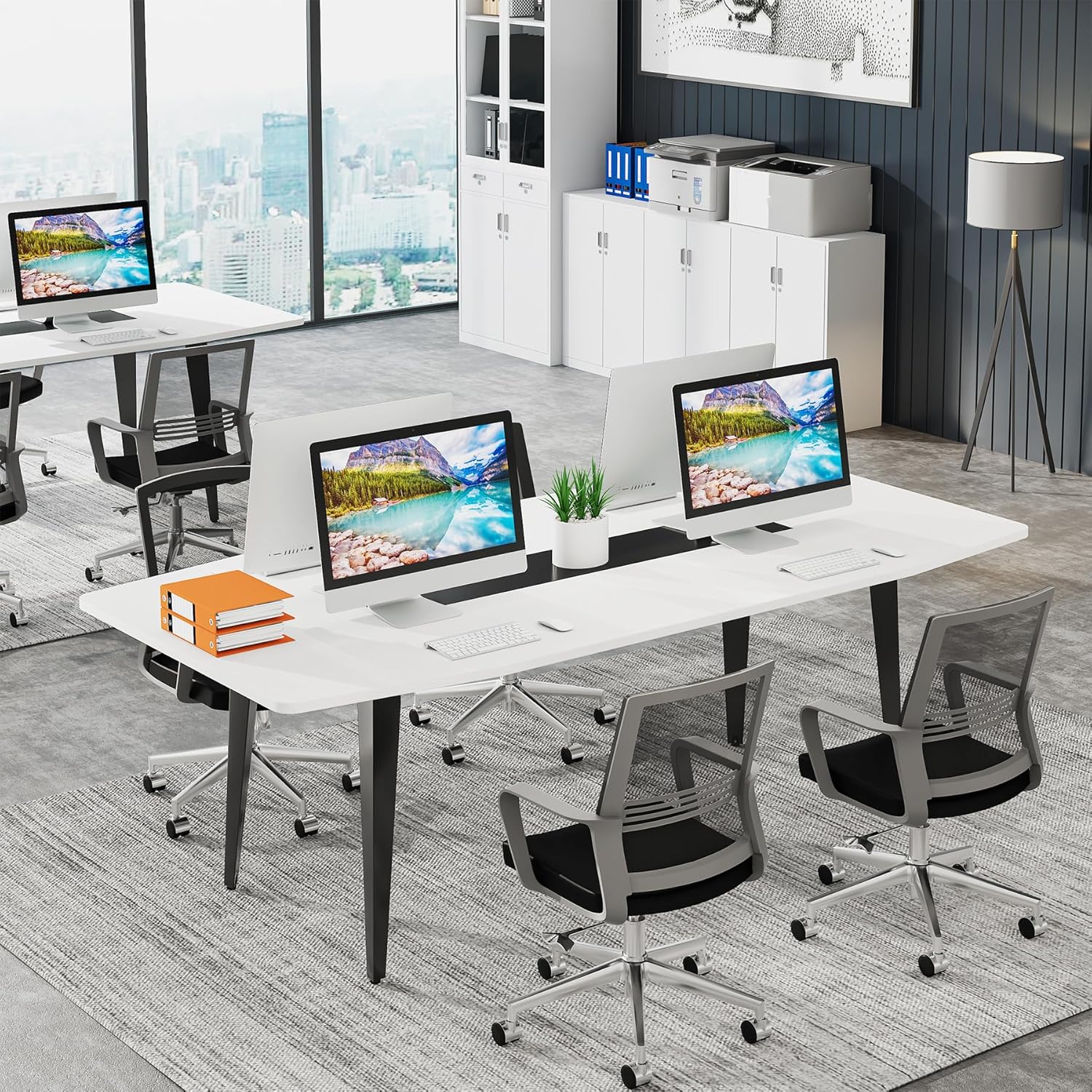- 【Modern Style】 Designed in modern style, our white conference table has elegant and beautiful appearance. It is perfect for your contemporary private or open-concept office space. Meanwhile,the boat curve design enables your team to see everyone around the table