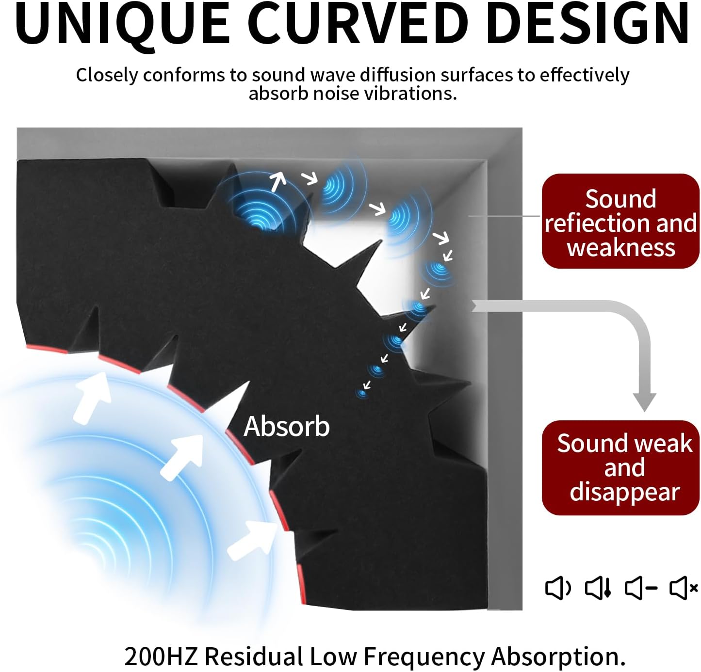 - Improve Low Frequency: Acoustic bass traps corner are made from a high density, fireproof, non-toxic, and high-quality material, to help eliminate reverb and echoes of bass sounds. They reduce unwanted reflections, dampens and diffuses mid to low frequency sound waves inside a room to minimize interference, and increases sound clarity.