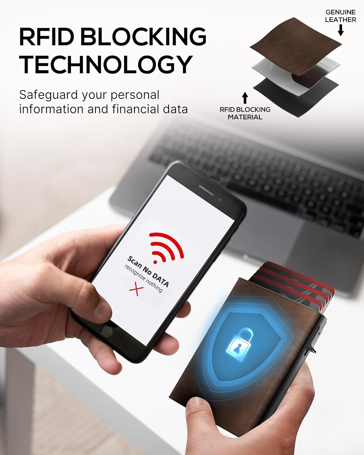- 【EFFORTLESS CARD ACCESS】 Experience unparalleled convenience with our innovative pop-up card case. A simple press of a button elegantly unveils your most-used cards, putting swift access at your fingertips.