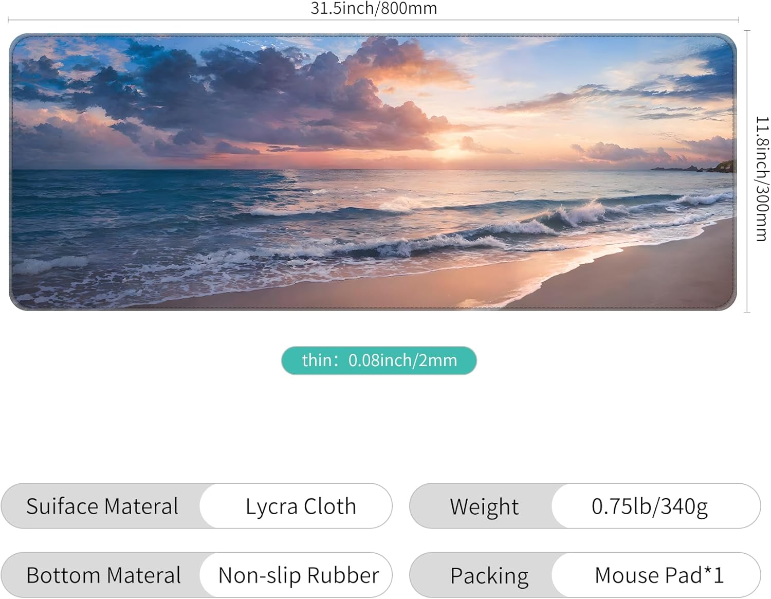 Dynippy Thin Extended Gaming Mouse Pad with Stitched Edges Large Mousepad Long XXL Keyboard and Mouse pad Desk Mat for Gaming Office & Home - Galaxy Space (Beach)