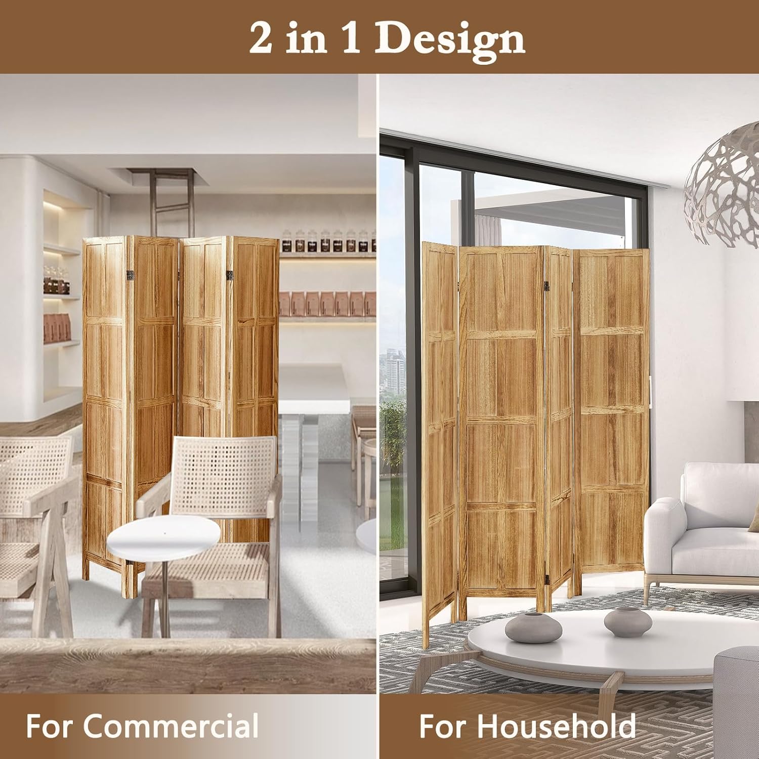 4 Panel Room Divider, 5.6Ft Wood Room Dividers and Folding Privacy Screens, Room Divider Wall Freestanding, Room Dividers Screen for Home Office Restaurant Bedroom, Light Brown