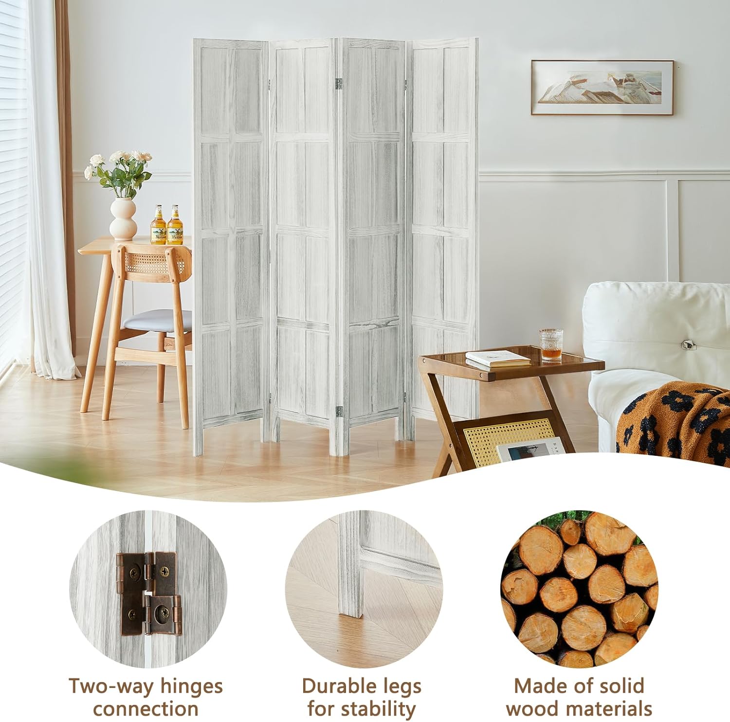 4 Panel Room Divider, 5.6Ft Wood Room Dividers and Folding Privacy Screens, Room Divider Wall Freestanding Room Partitions, Room Dividers Screen for Home Office Restaurant Bedroom, White