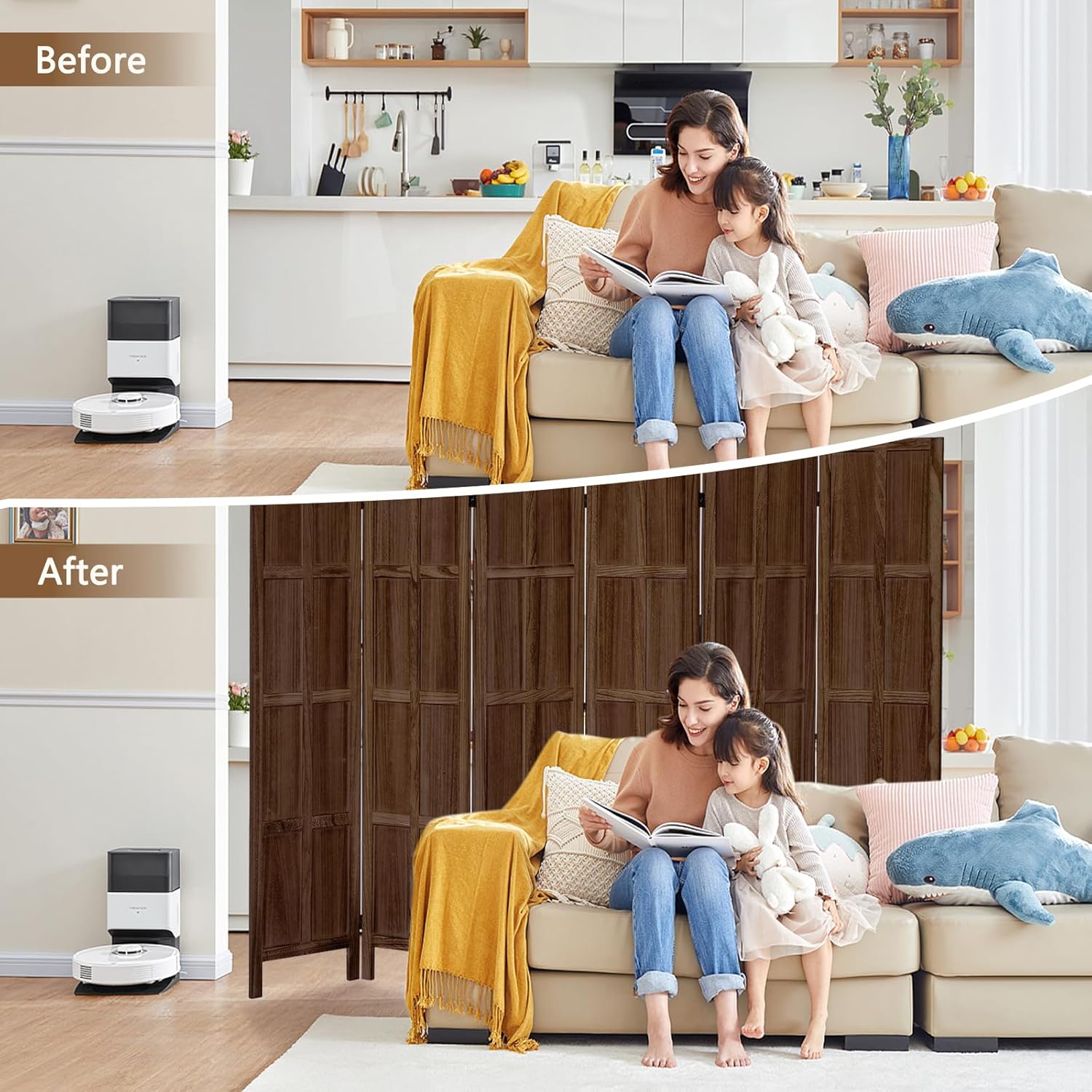 6 Panel Room Divider, 5.6Ft Wood Room Dividers and Folding Privacy Screens, Room Divider Wall Freestanding Room Partitions, Room Dividers Screen for Home Office Restaurant Bedroom, Dark Brown