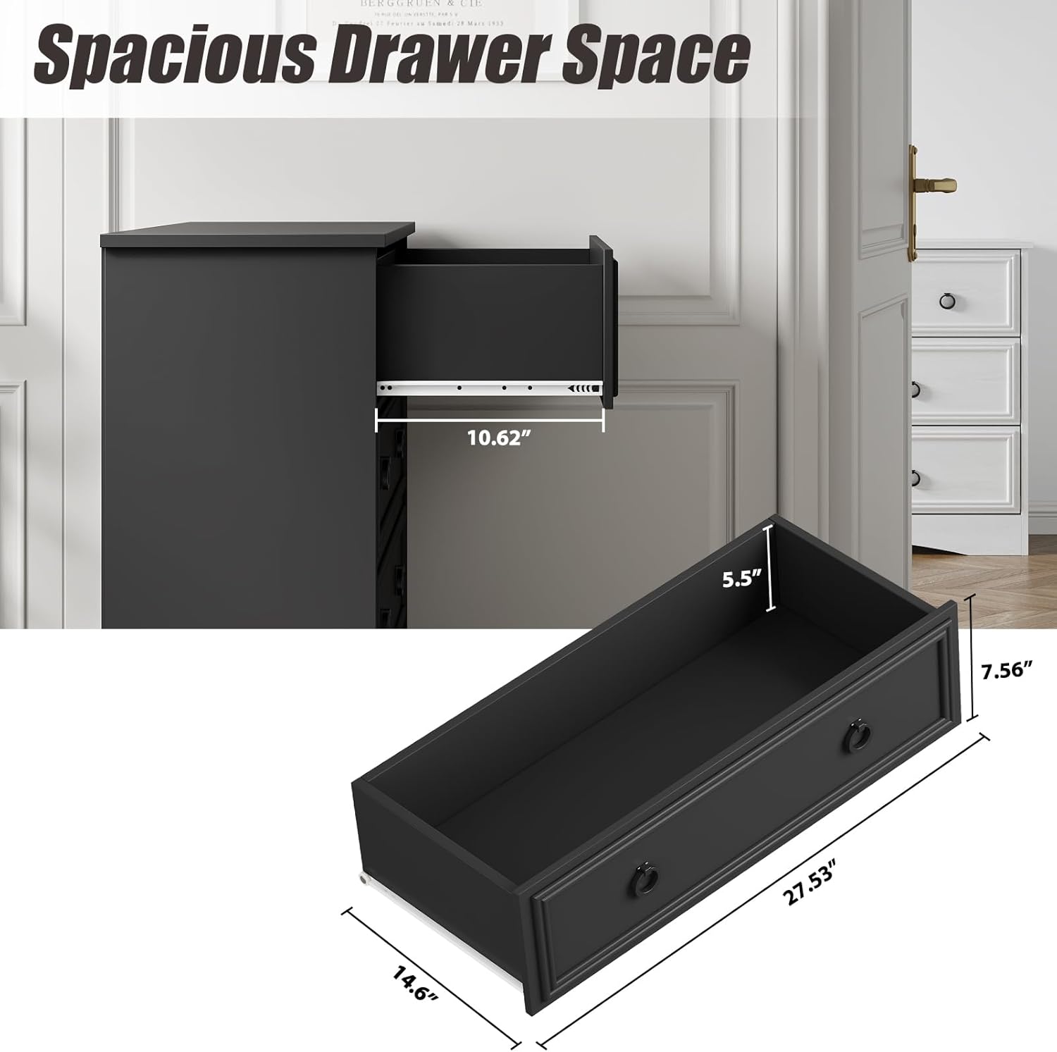 - 【Ample storage space】 Assembled dimension: 29.53"W x 15.75"D x 35.44"H.This wood dresser is designed with a spacious interior. The drawers won't collide or collapse. And the chest provides an appropriate height to place the potted plant or a lamp.