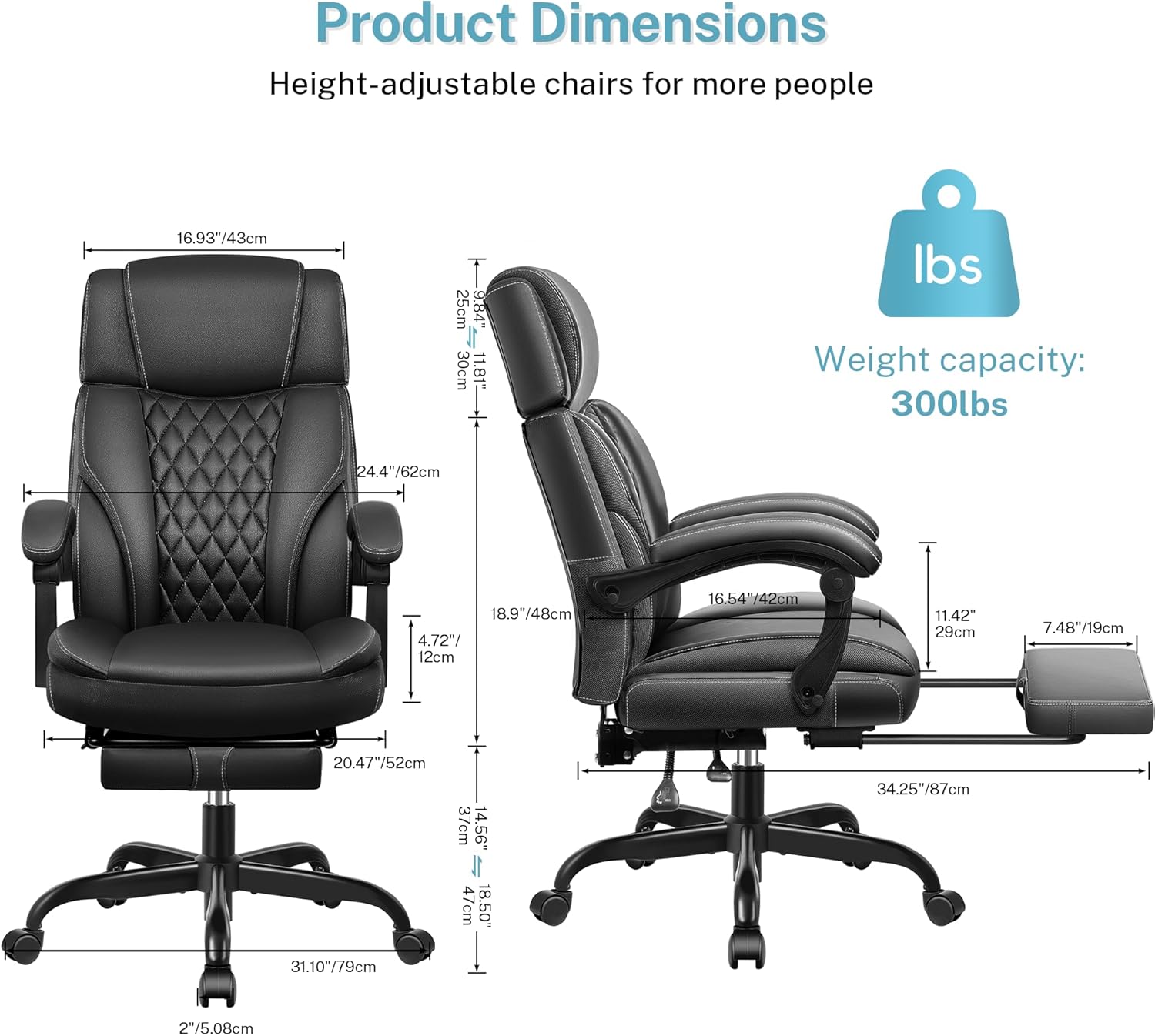 - Multifunctional and Easy to Install: To meet your daily needs, the backrest of this high back office chair can be adjusted and locked in the range of 90-135°. All parts, hardware, tools and instructions included in the package. We also provide installation videos, you can easily complete the assembly in 20-25 minutes. If you have any questions or issues, please feel free to contact our customer support team.