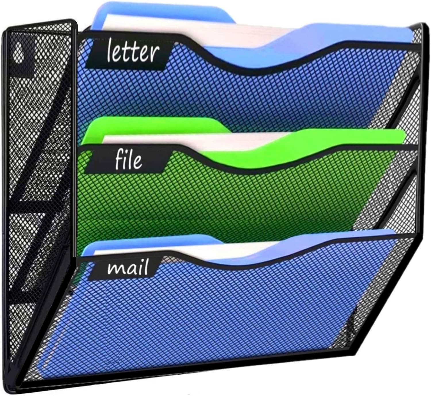 Kuntine.B Wall File Organizer Office Hanging Magazine Holder Wall File Organizer for Office Home (Black, 3 Tier)