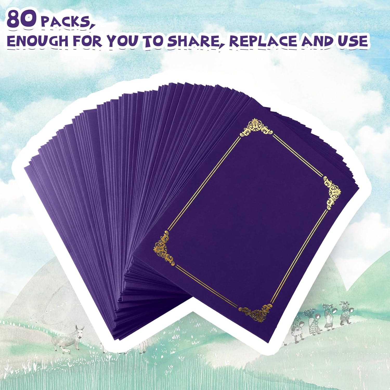 Fainne 80 Pieces Certificate Holders Diploma Holders Document Holder Certificate Covers Certificate Folders with Gold Foil Border for Letter Size 8.5 x 11 Inches Diploma Documents Awards (Purple)
