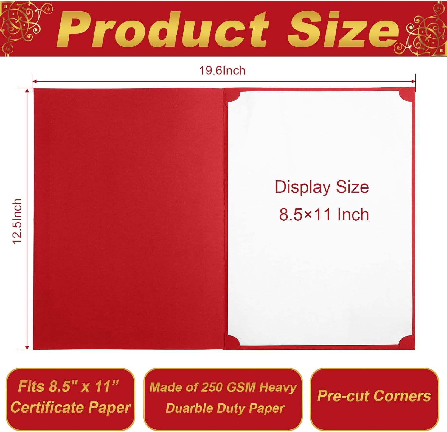 - Packing List: Our product is a set of 120 red certificate holders to keep your certificates, awards, anniversary diplomas, important letters, business documents, autographed photos or letter size cardstock in shape