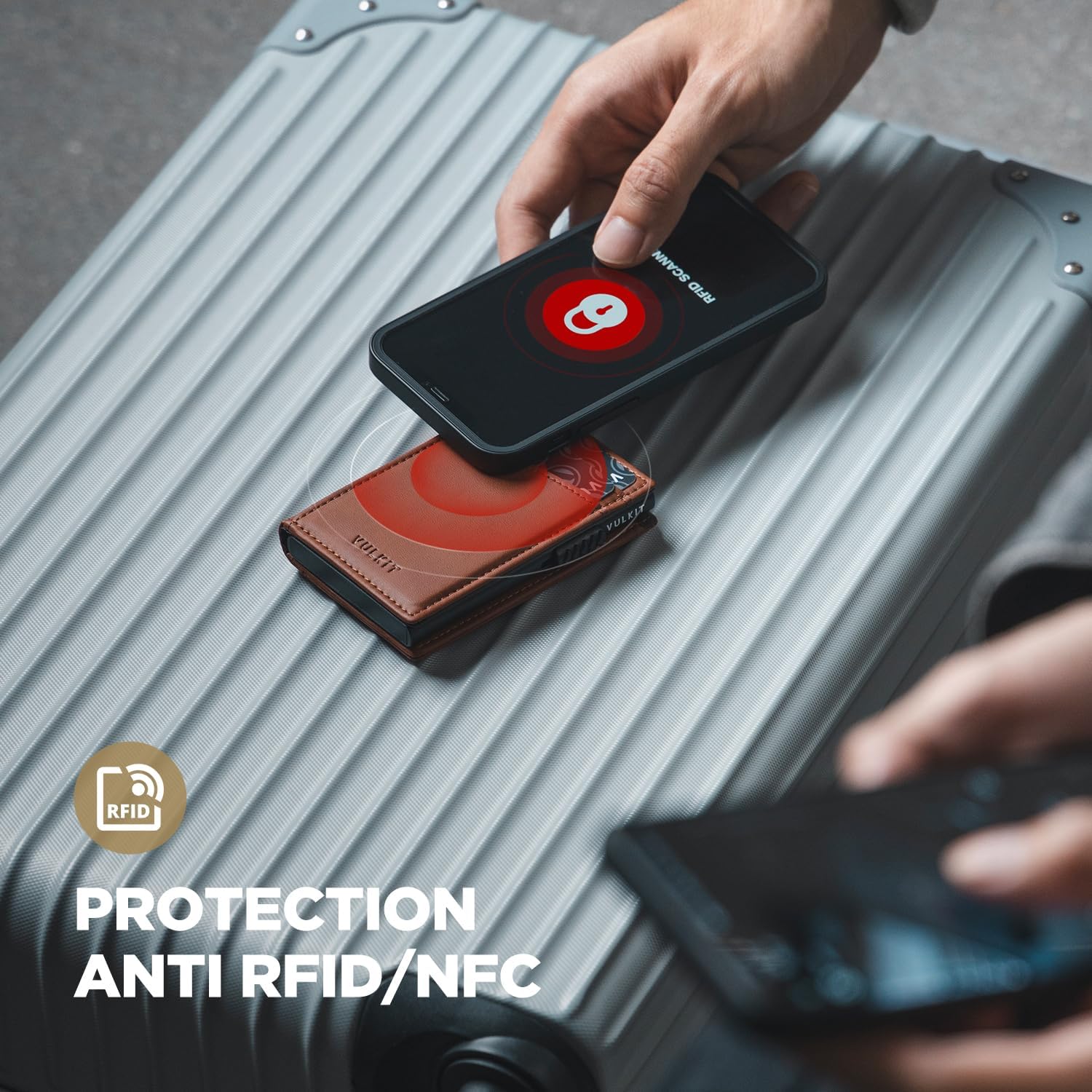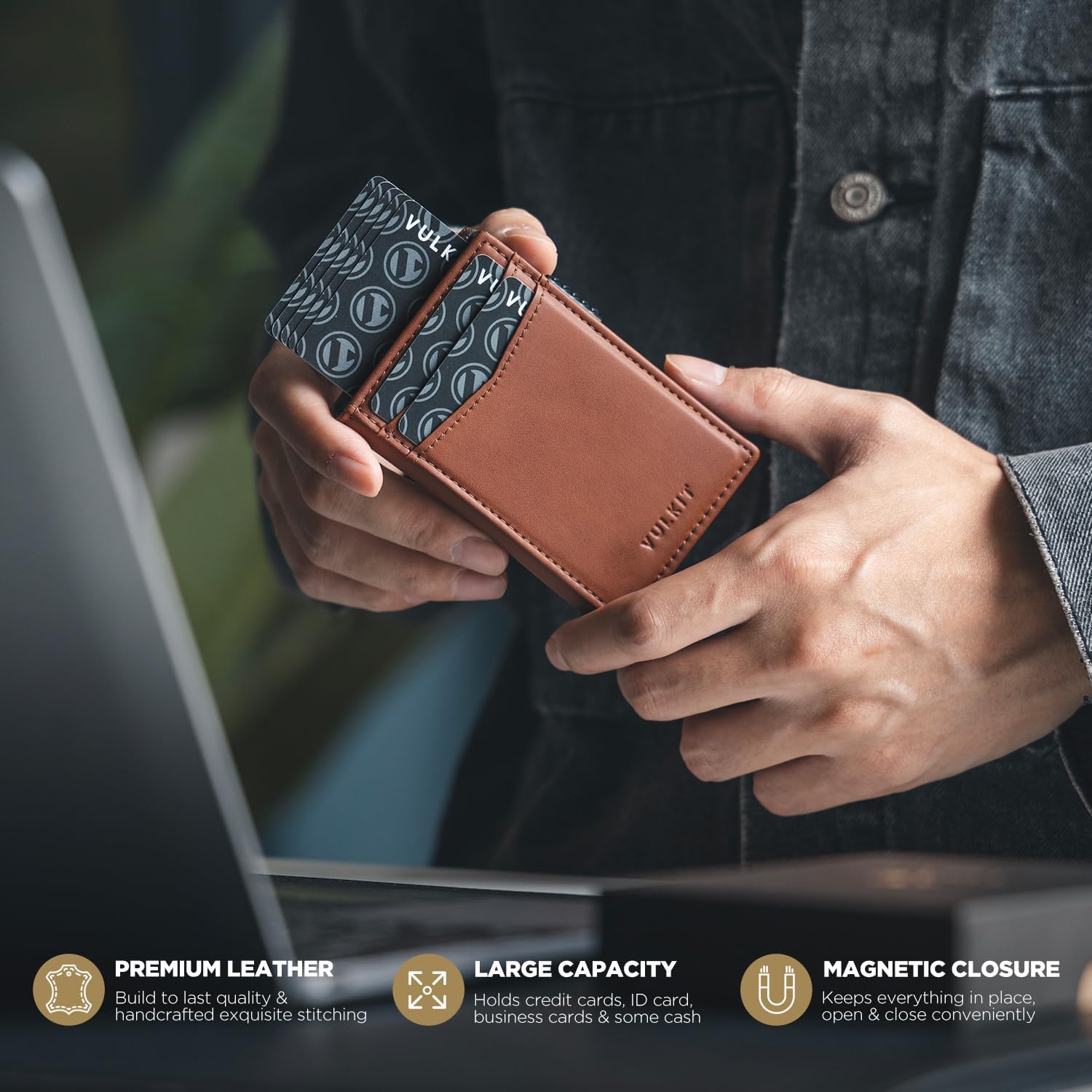 VULKIT Men's Wallet with ID Window Premium Leather Wallets RFID Blocking Minimalist Wallet Pop Up Card Holder Magnetic Closure