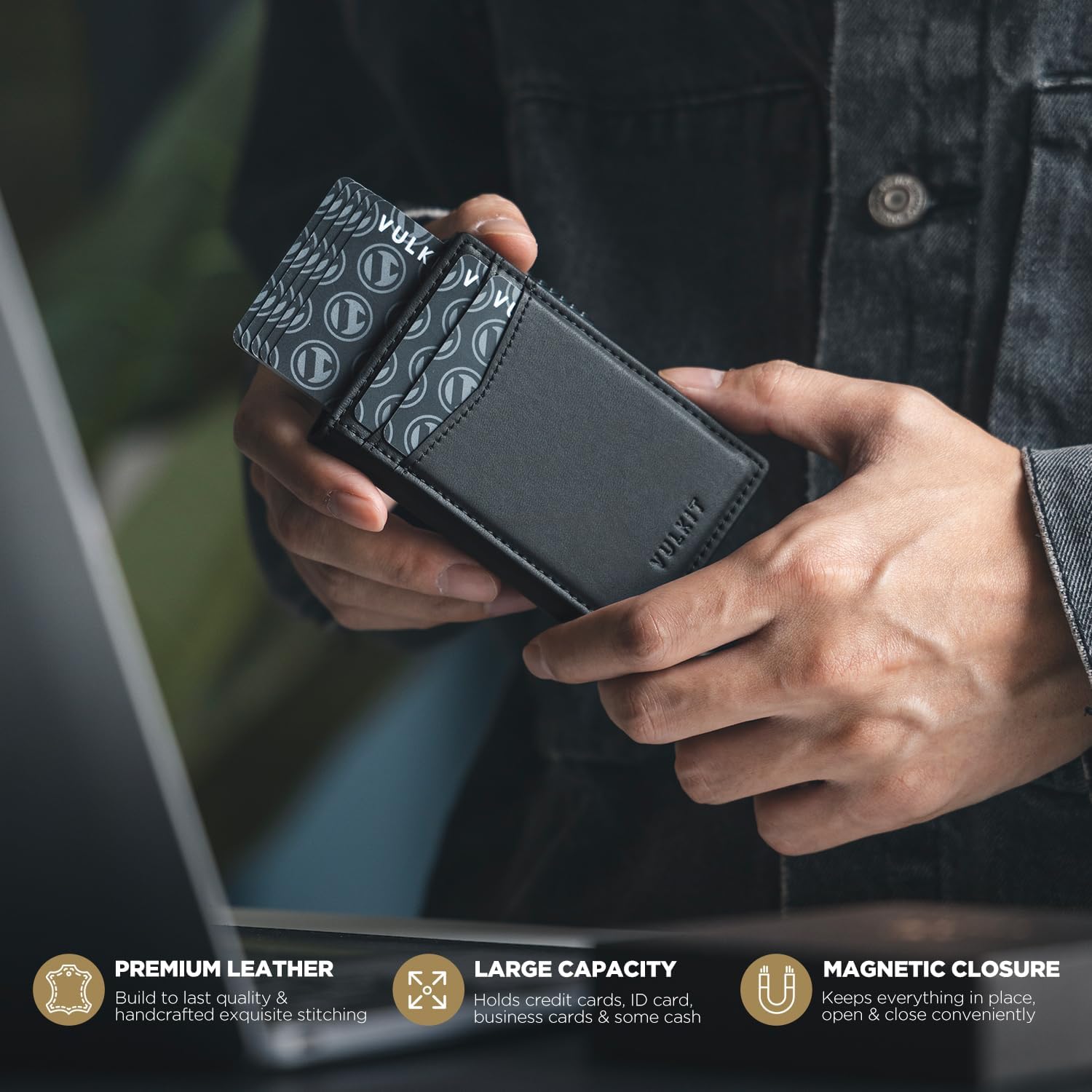 VULKIT Men's Wallet with ID Window Premium Leather Wallets RFID Blocking Minimalist Wallet Pop Up Card Holder Magnetic Closure