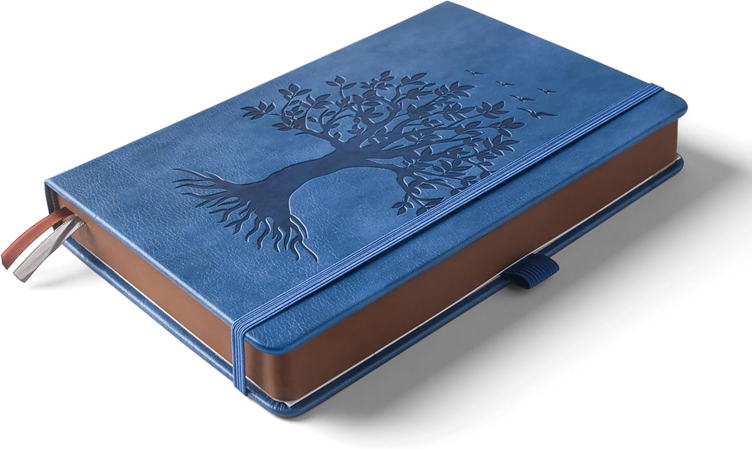 ZXHQ A5 360 Pages Lined Journaling Notebooks with Pen, Journals for Women Men Writing Notebook, Tree of Life Design, Brown Edge Fine Inner Pocket - Blue