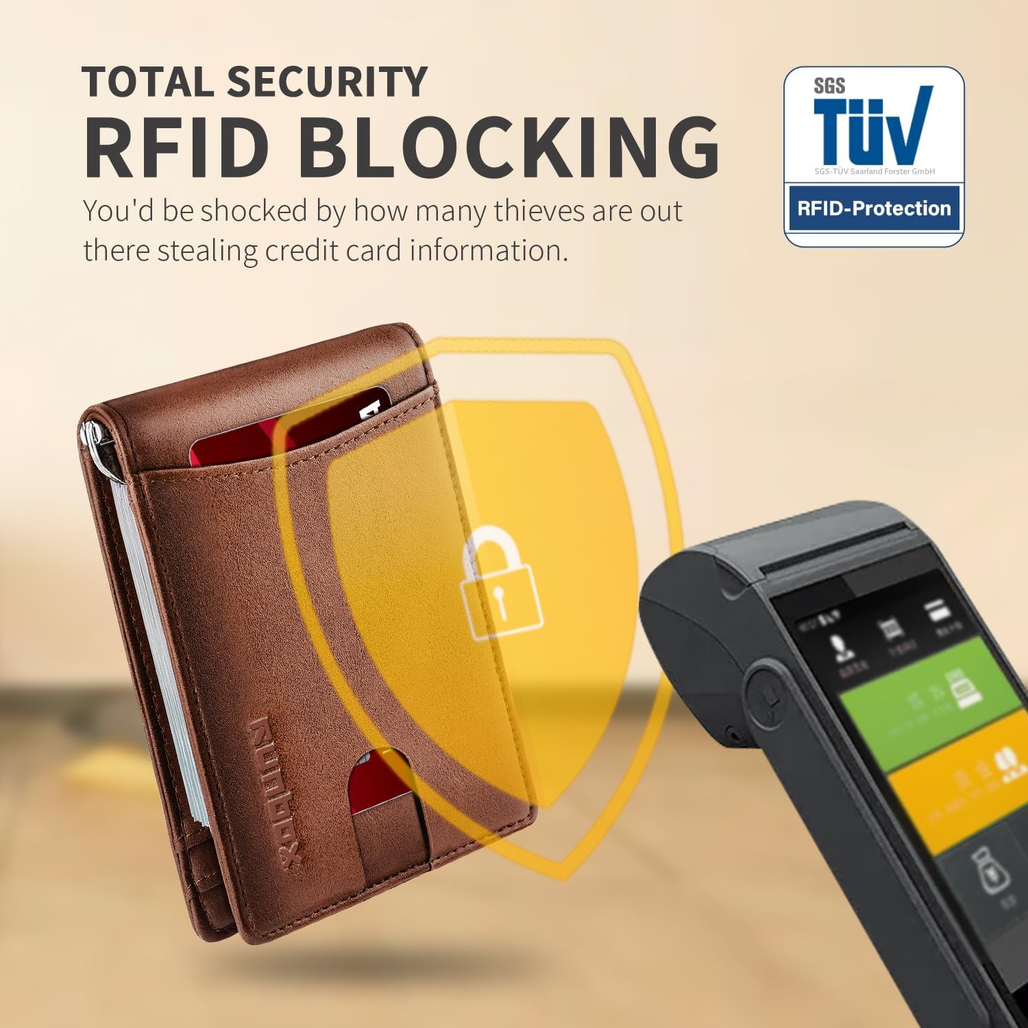 - Large Capacity Wallet: Designed as a slim wallet for men, it effortlessly fits into pockets without bulk. Measuring just 4.4x3.5x0.4 inches the card holder wallet could hold 11 cards and cash securely, ideal for ever daily or travel used