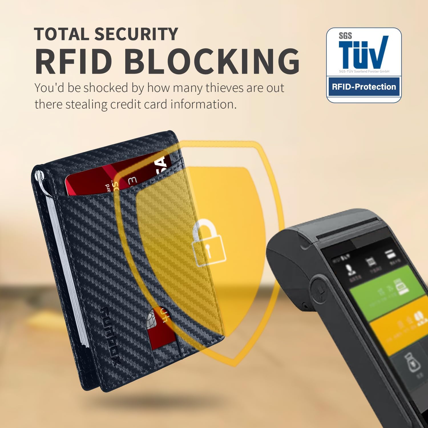 Slim Money Clip Wallets for Men RFID Blocking 11 Card Holder Minimalist Small Thin Carbon Leather Bifold Mens Front Pocket Wallet Gift Box
