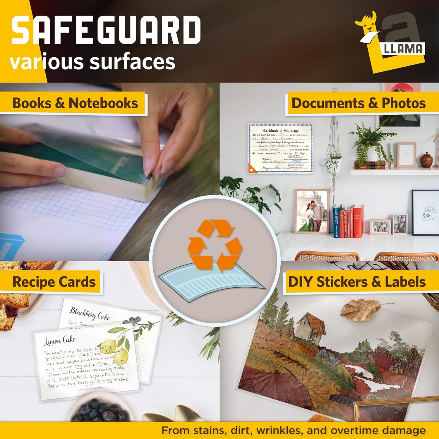- ECO-FRIENDLY DURABILITY: Embrace sustainability without sacrificing quality with La LLama clear contact paper roll made of recyclable PP material. This contact paper clear for crafts and protection offers a durable solution for high-use areas, making clear contact paper peel and stick an eco-conscious choice.