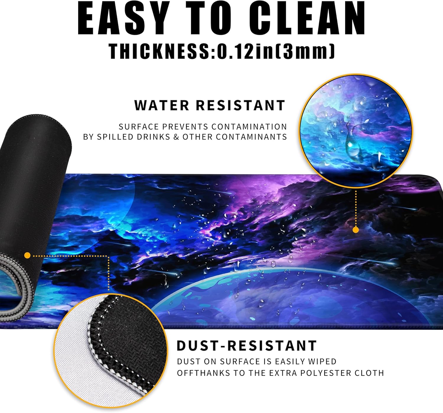 - 【Water Resistant Coating】The Fine-Textured, Heat-Resistant And Spill-Proof Material Effectively Prevent Accidental Damage From Scratches, Stains, Spills, Heat And Scuffs. Solar System Mouse Pad Is Easy To Keep Clean With Just A Wipe Of A Damp Cloth For Continuous Use. Large Gaming Mouse Pad Provides A Protective, Waterproof, Colorful Surface For Your Home Office Desk.