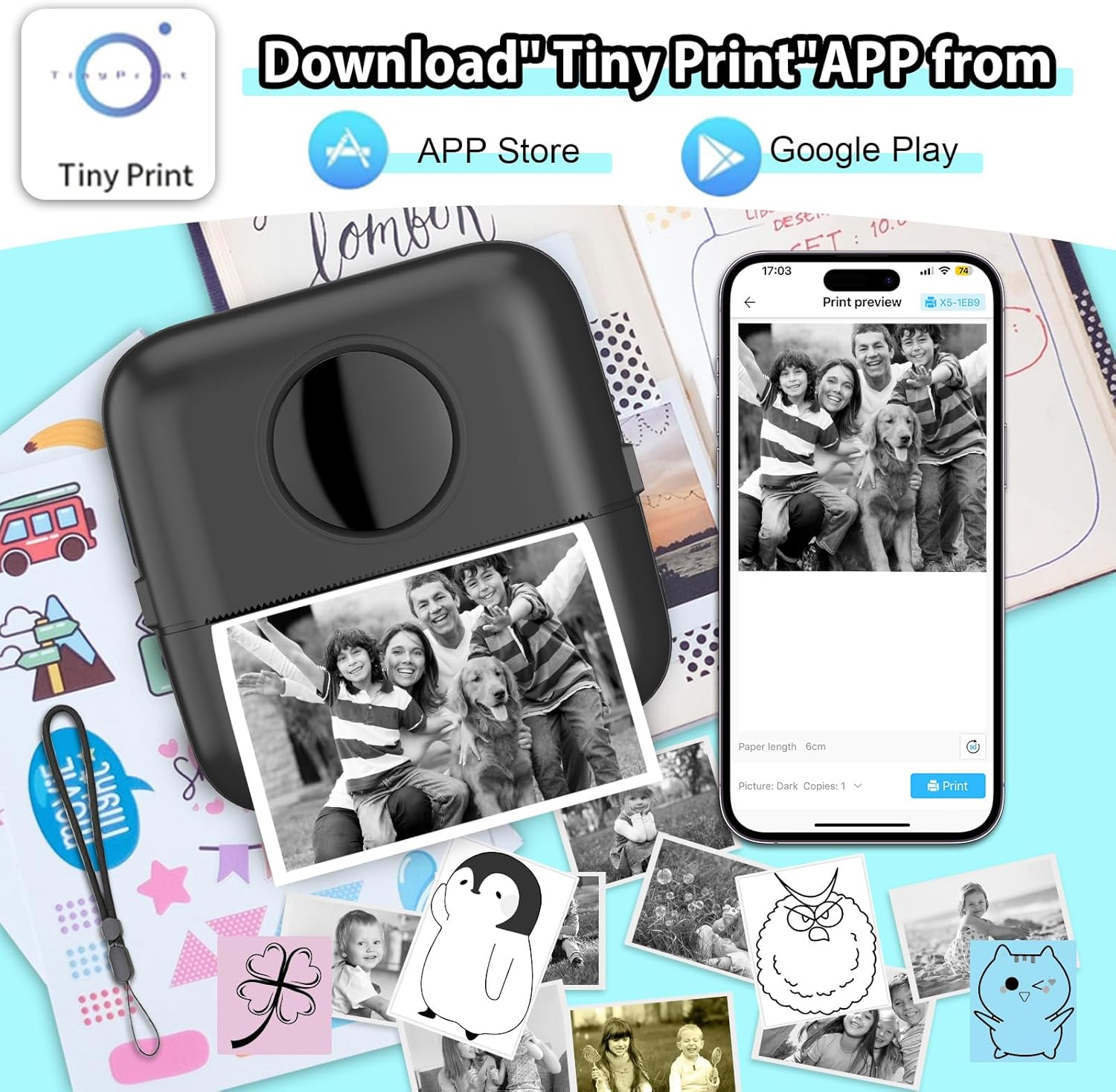 - 2025 Newest Printer & Pocket Portable: The HuiJuKeJi photo printer size is 82*82*45 mm, and it only weighs 210g, can be loaded with pockets, bags.It is easy to print anytime, anywhere, and can recognize text, pictures, tables, emoticons, QR codes, etc. !! Attention: Please follow the printer's user manual to search for "Tiny Print" in the App Store or Google to connect and use. Please search for a connection through the app instead of using the Bluetooth on your phone