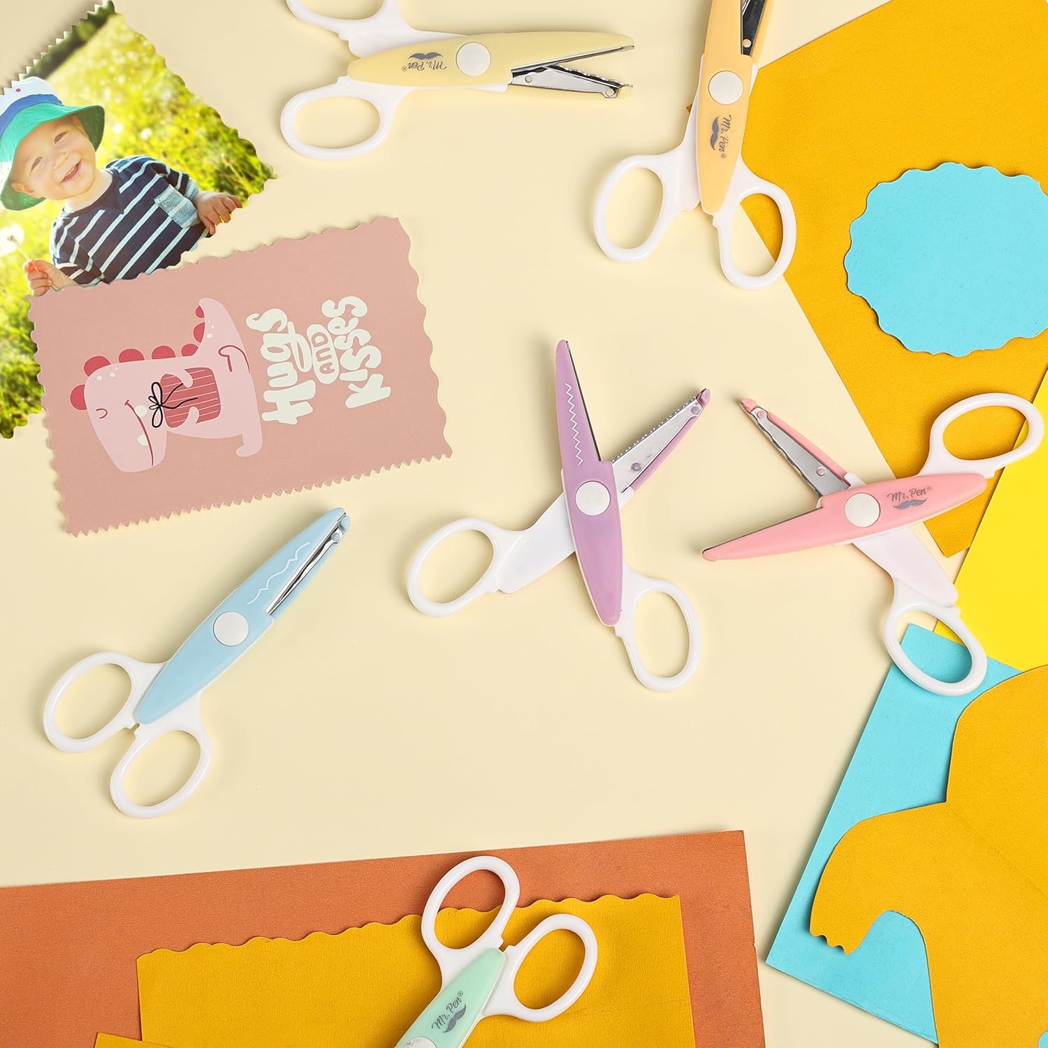 - Mr. Pen craft scissors collection features a vibrant set of 6 scissors, each with distinct, decorative edges to enhance creative projects.