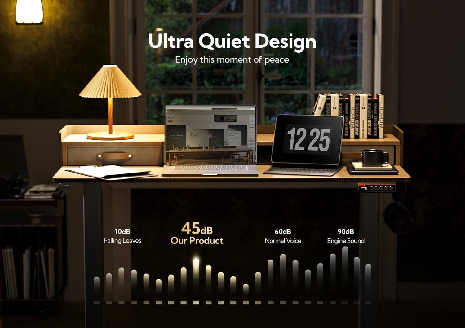 - Smooth Height Adjustment with Powerful Motor: Freely select adjustable standing desk height, from 28.35" to 46.46". Save your favorite three settings and smoothly switch the electric standing desk between them. Claiks custom motor provide strong power for standing desk adjustable height, and the noise is under 50 dB.