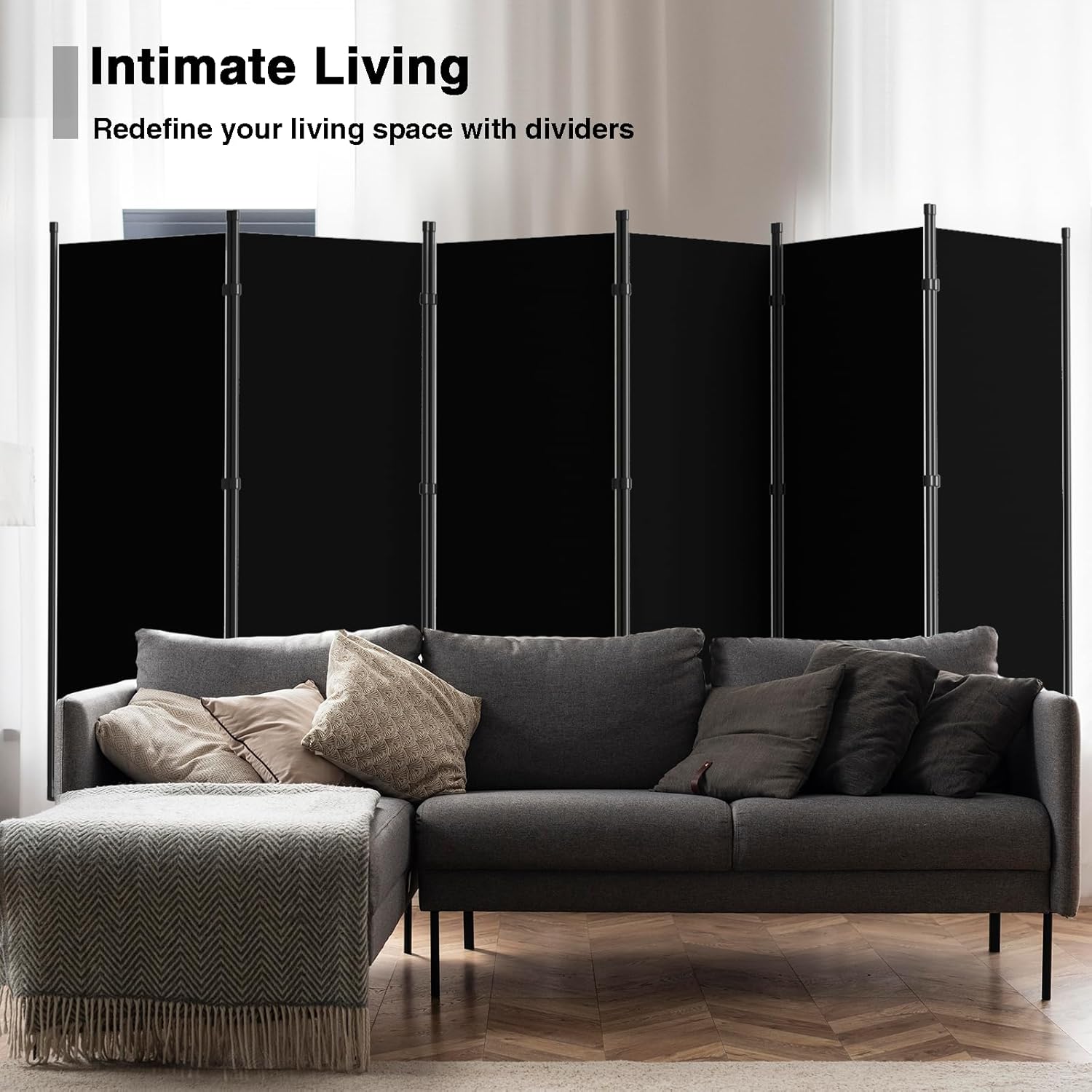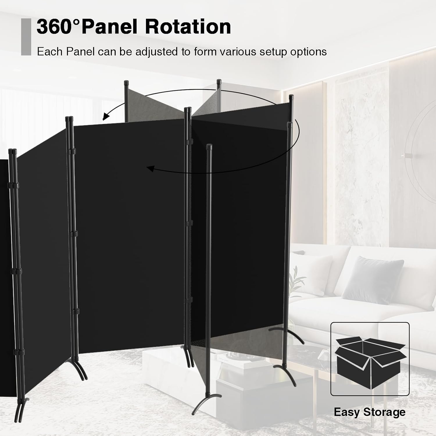 6 Panel Room Divider, 6FT Portable Room Dividers Folding Privacy Screens, 198" W Freestanding Fabric Divider for Room Separation, Partition Room Divider Panel for Dorm Home Studio Office, Black