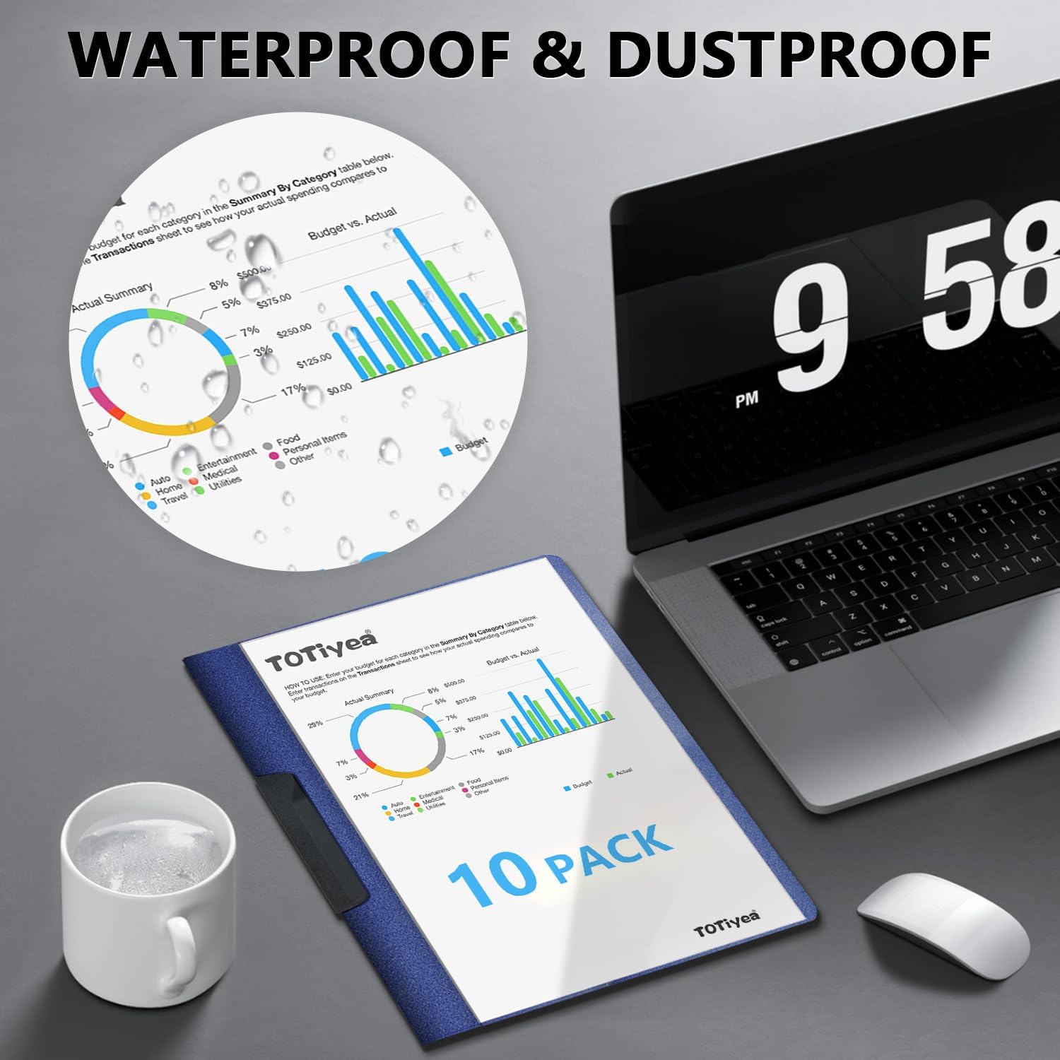 TOTiyea 10 Pack Clear Report Covers with Swing Clip, File Folder with Swing Clip, 30 Sheets Capacity, Slide Locking Report Covers, Letter Size (Navy, 10 Pack)