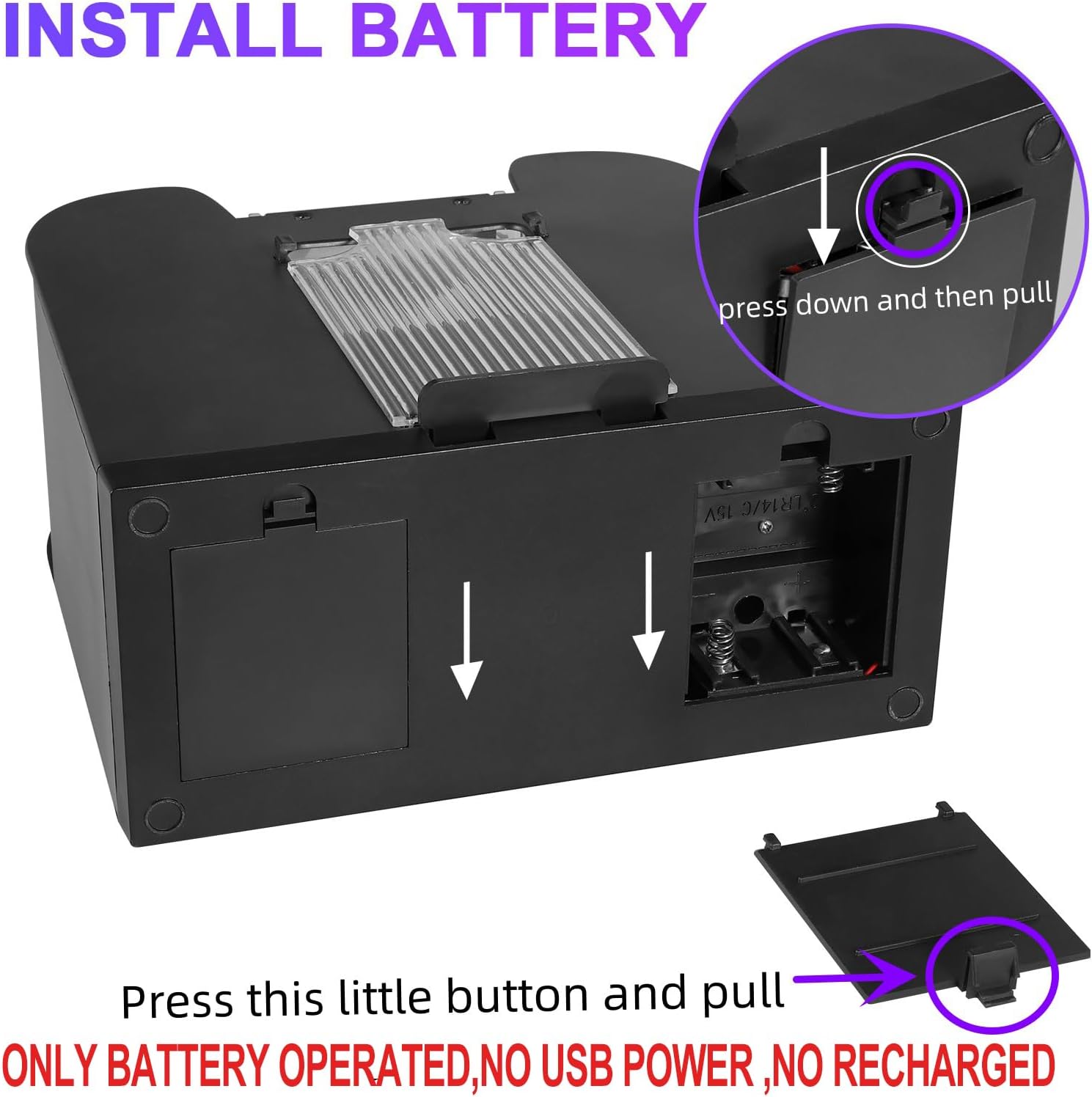 - FEIERYA automatic card shuffler made of high-quality materials,easy to use,help you shuffles 6 deck poker cards in seconds( only battery operated,no usb power no recharged)