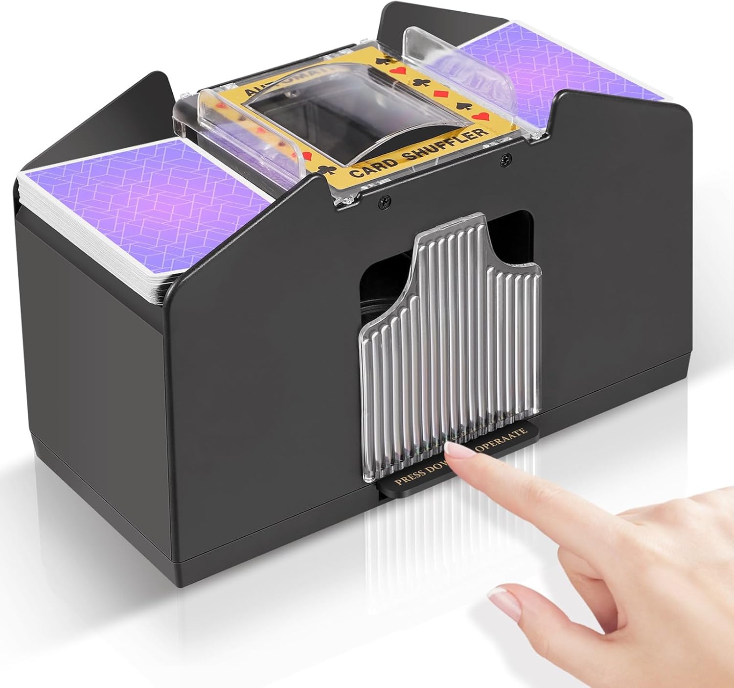 - 【Card shuffler 4 deck】:Card shuffler battery operated,easy to use.Elderly,young people,children can use ,help you shuffle 1-4 deck playing cards in seconds,save your time